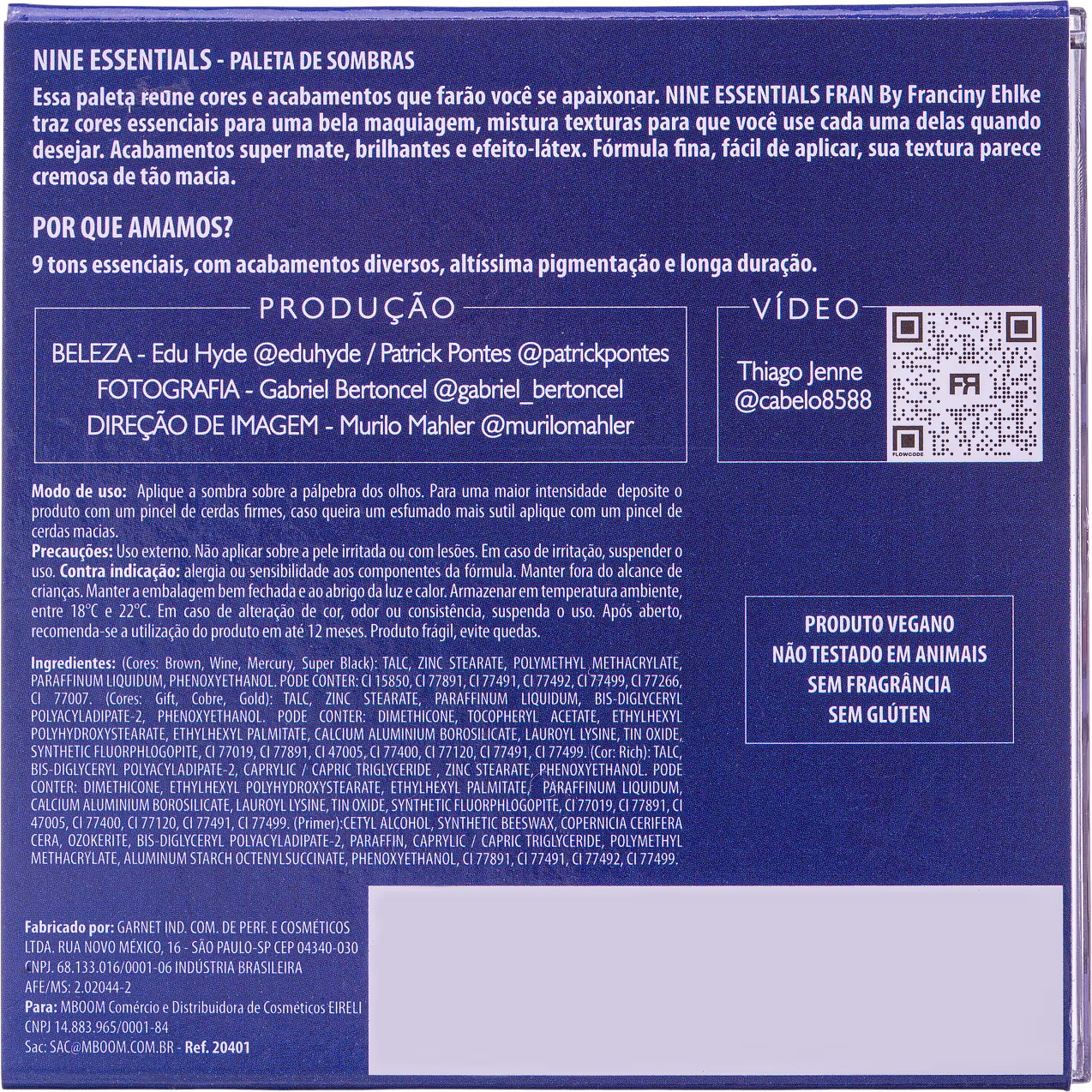 A Paleta de Sombras Fran by Franciny Ehlke Nine Essentials reúne 9 cores com acabamentos que farão você se apaixonar. Traz cores essenciais para uma bela maquiagem, misturando texturas para que você use cada uma delas quando desejar. Acabamentos super mate, brilhantes e efeito-látex. O produto tem fórmula fina, fácil de aplicar e com textura que parece cremosa de tão macia.