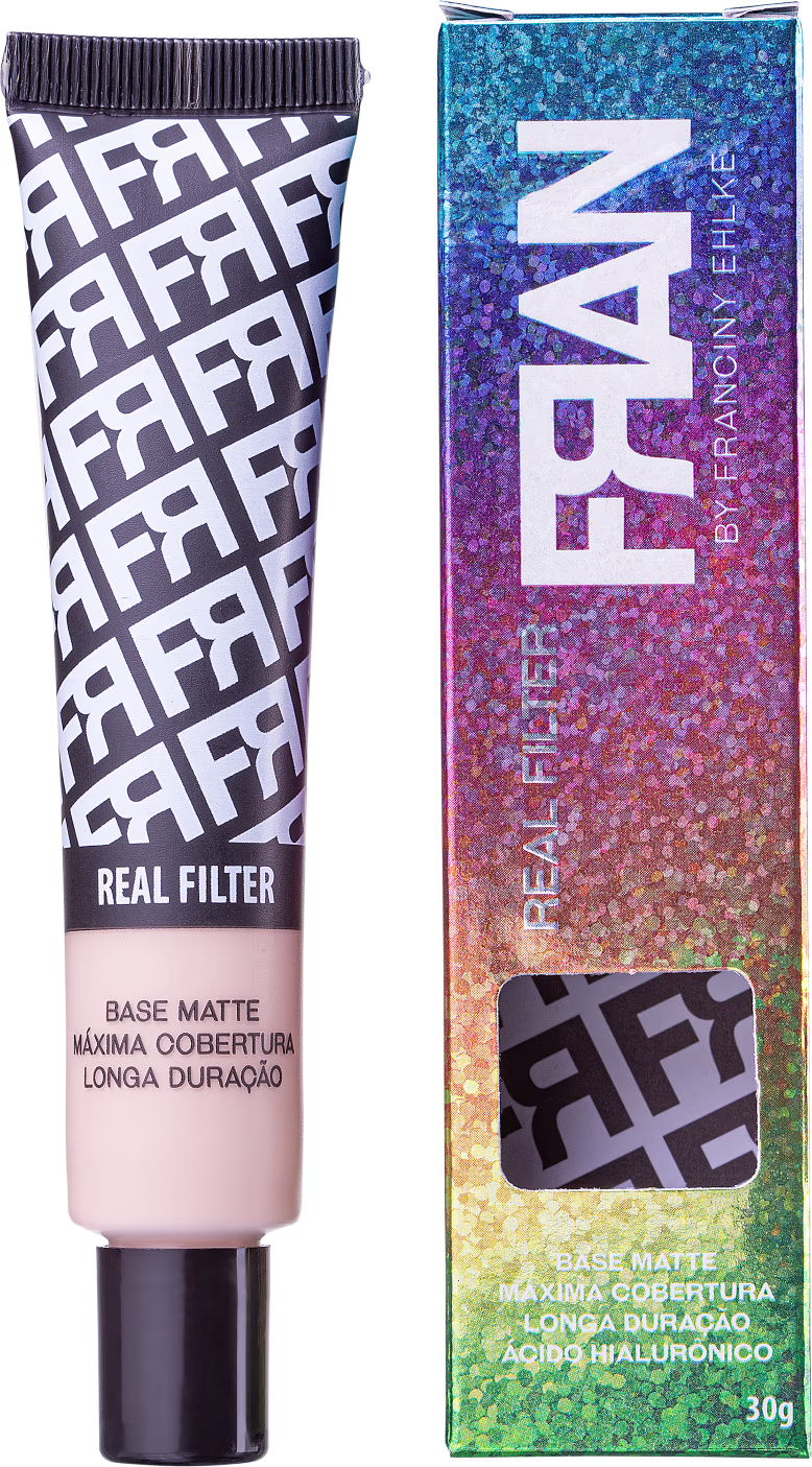 A Base Líquida Fran by Franciny Ehlke Real Filter vai dar aquele acabamento matte impecável para a sua make, além da longa duração e resistência à água, que serão seus aliados no dia a dia. O Ácido Hialurônico e a Vitamina E juntos na fórmula, fazem a diferença no disfarce dos poros, hidratação e anti-oxidação. Disponível em 12 tons.