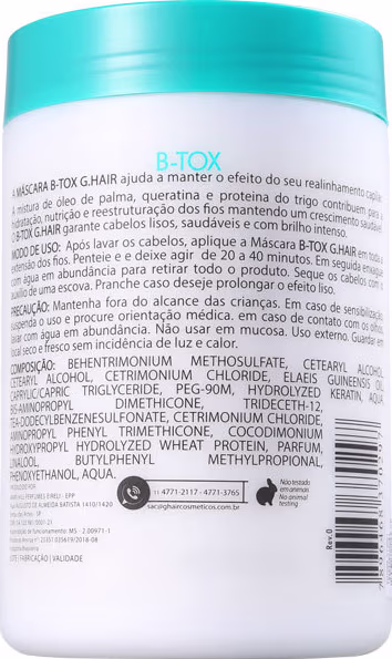 G.Hair B-Tox Reposição de Massa e Reconstrução é um grande aliado para prolongar o efeito liso dos tratamentos redutores de volume! Sua combinação de vitaminas e ácido graxos mantém as cutículas seladas, o que garante a proteção contra os danos, mais controle, brilho e maciez.