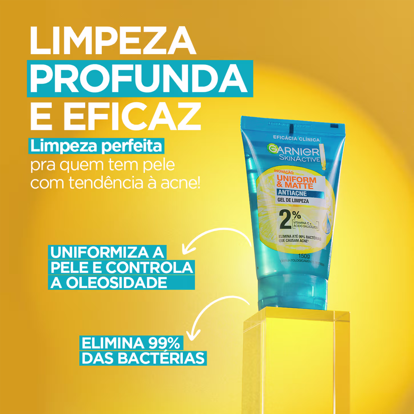- - Gel de limpeza purificante que controla a oleosidade e elimina até 99% das bactérias que causam a acne.