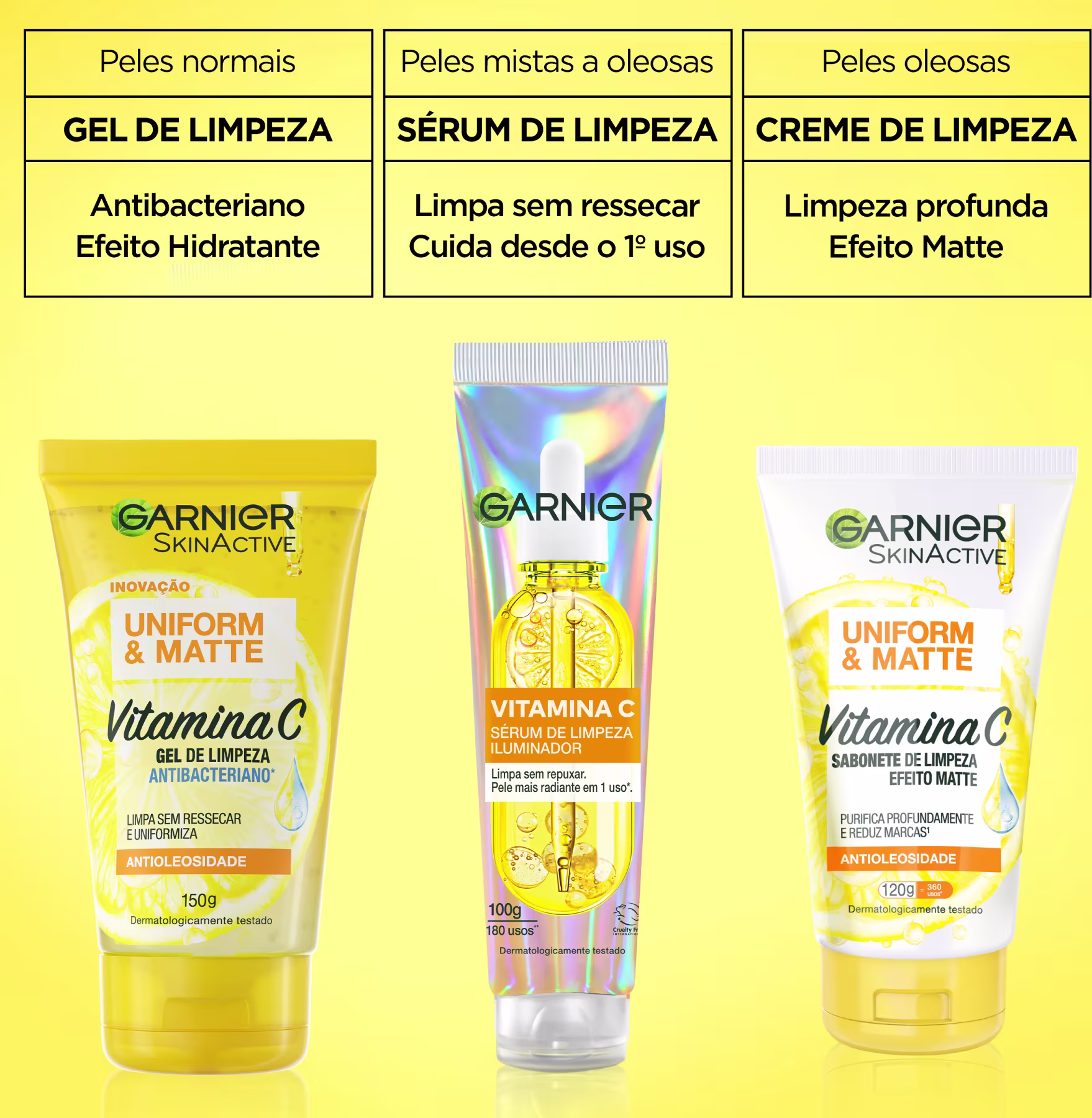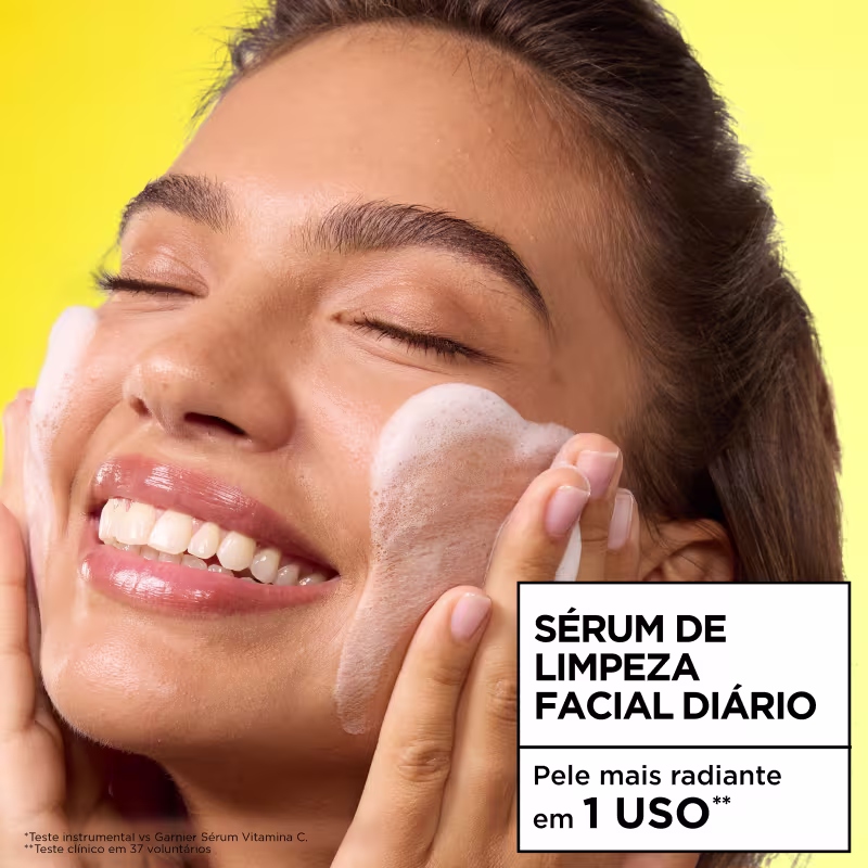 Não sei o CEPSérum de limpeza facial. Garnier SkinActive Vitamina C traz textura cremosa, controla oleosidade, hidrata, uniformiza e ilumina a pele com ação suave e confortável.