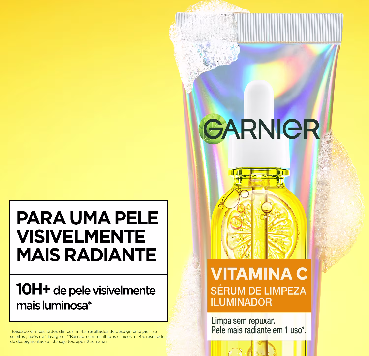 Não sei o CEPSérum de limpeza facial. Garnier SkinActive Vitamina C traz textura cremosa, controla oleosidade, hidrata, uniformiza e ilumina a pele com ação suave e confortável.