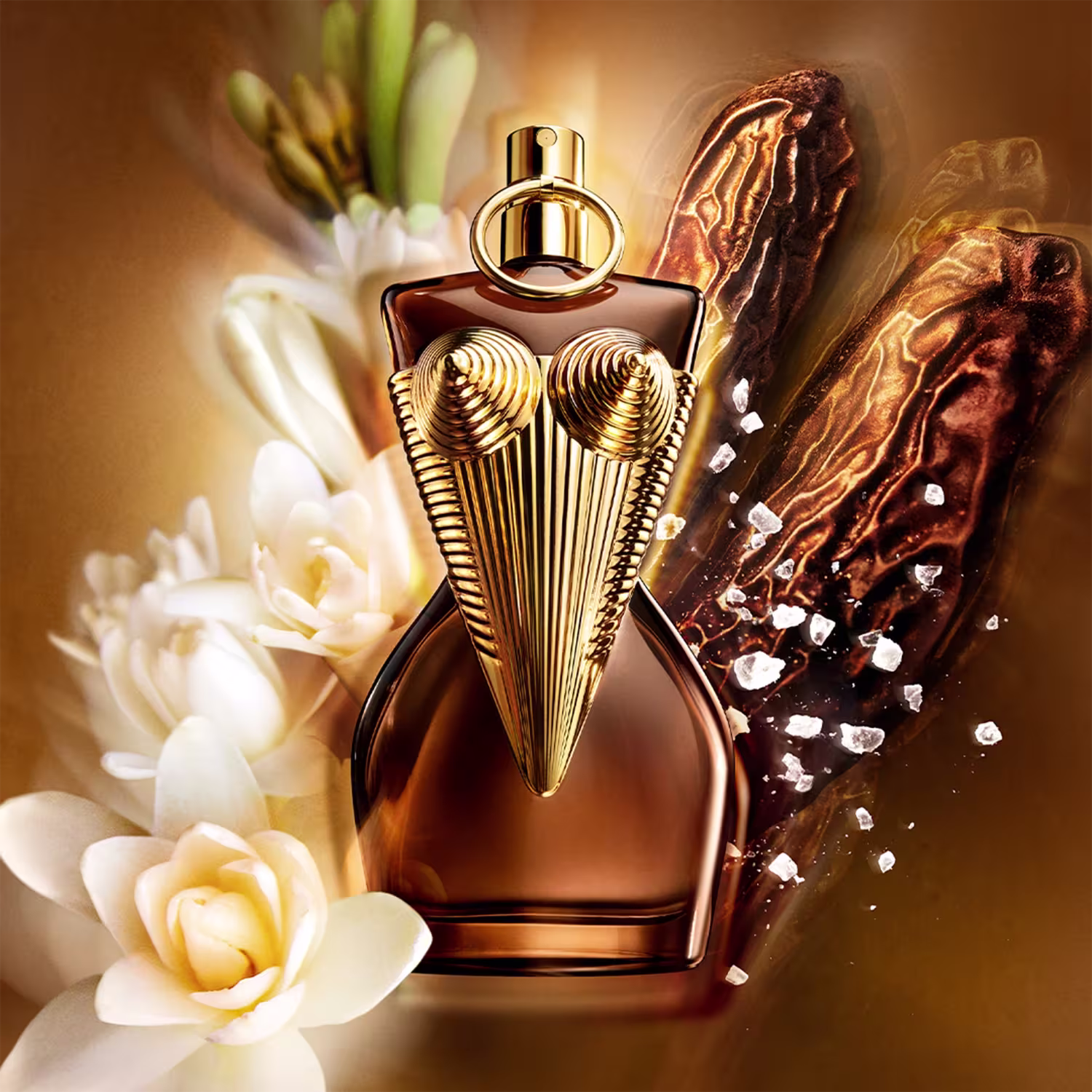 O Perfume Gaultier Divine Elixir, de Jean Paul Gaultier, é uma celebração da feminilidade destemida, trazendo uma fragrância floral marinha com toques ambarados que hipnotizam desde o primeiro instante. A cremosidade intensa da tuberosa encontra a profundidade da fava tonka, criando um contraste magnético e sensual. Vestido em um frasco dourado com reflexos âmbar e o icônico espartilho cintilante, é pura extravagância em forma de perfume. Um tributo à mulher que não segue regras, dita tendências e encanta com presença e poder.