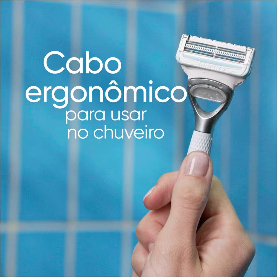 Os refis incluem uma lâmina extra na parte de trás, para maior precisão nos contornos e lugares difíceis de alcançar e contam com lubrificação dupla para um deslizar incrível. O produto está dermatológica e ginecologicamente testado, e seu cabo ergonômico é ideal para usar no chuveiro.