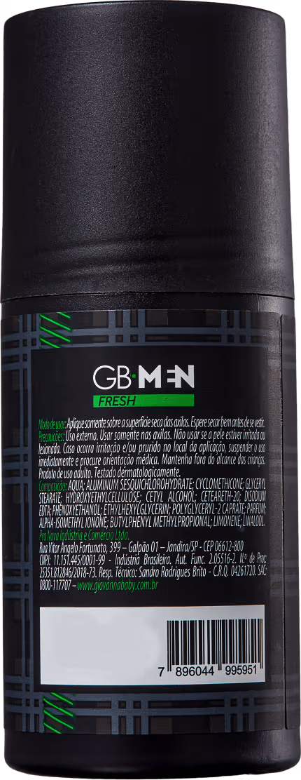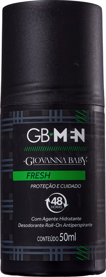 Desodorante masculino em versão roll-on. Com agentes hidratantes, Giovanna Baby GB Men Fresh proporciona até 48 horas de proteção e cuidado.