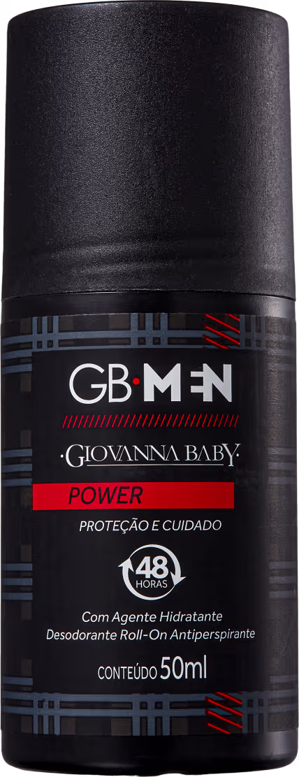 Desodorante masculino em versão roll-on. Giovanna Baby GB Men Power controla o suor e protege por até 48 horas com fragrância vibrante.