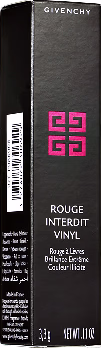 A fórmula de Givenchy Rouge Interdit Vinyl traz resina de silicone que forma uma película brilhante e fina. Além disso, proporciona hidratação intensa aos lábios para uma sensação de conforto e maciez.