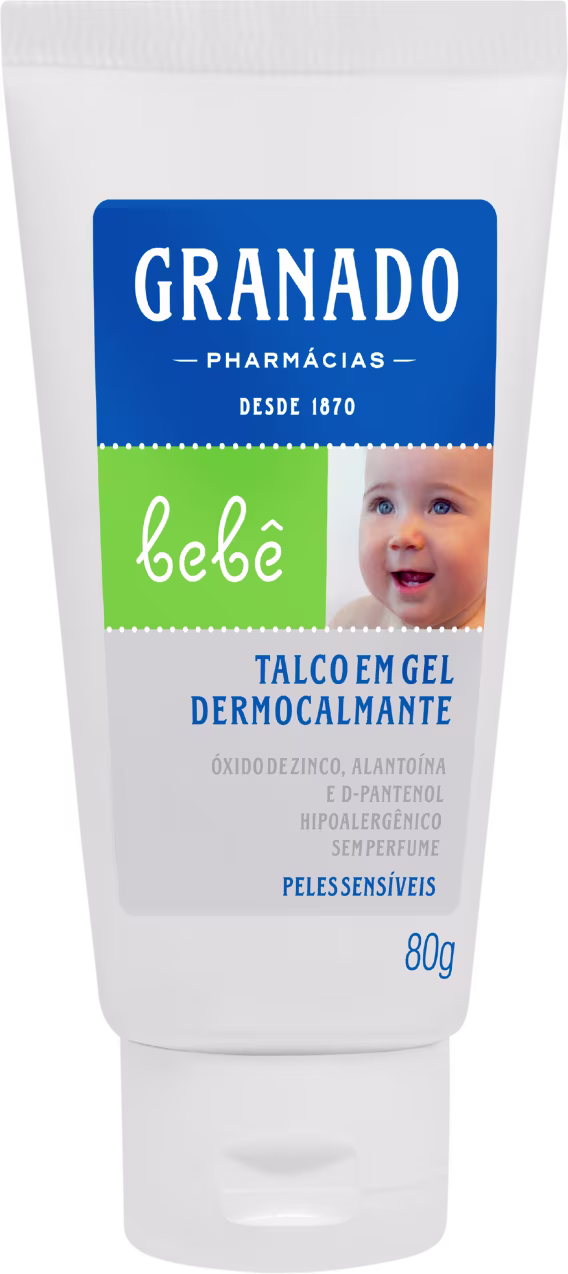 Granado Bebê Dermocalmante Peles Sensíveis Talco refresca, hidrata e acalma até as áreas mais delicadas da pele, seja de um recém-nascido ou de um adulto. Sua fórmula é livre de fragrância, álcool, óleo mineral, corantes, silicones e parabenos.