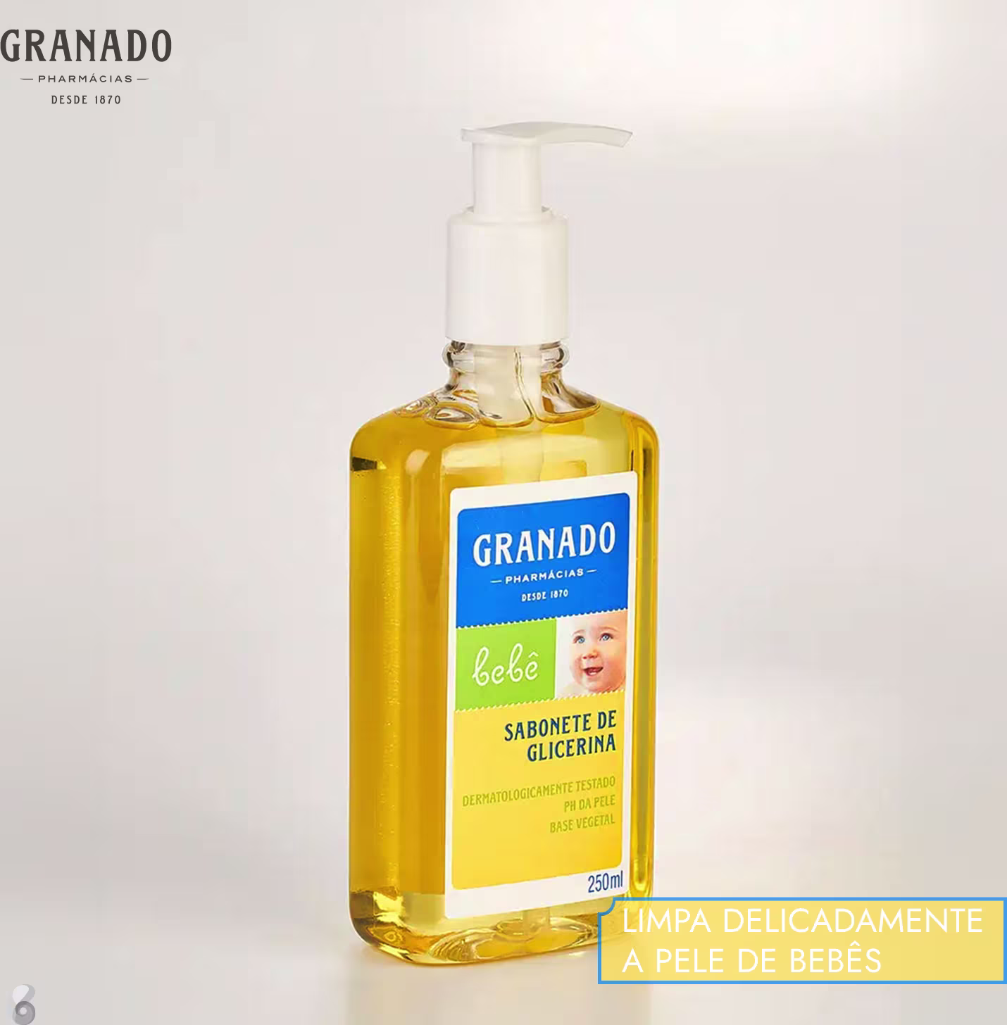 Sabonete líquido para bebês. Granado Bebê Glicerina Tradicional limpa delicadamente, ajuda a hidratar e evita o surgimento de irritações, além de deixar a pele muito mais macia e suavemente perfumada.