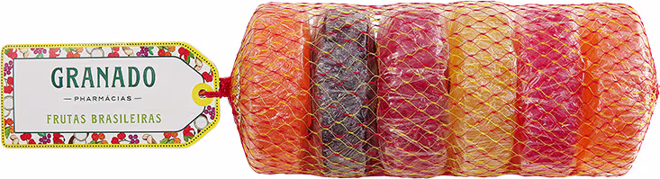 Os sabonetes do kit Granado Glicerina Frutas Brasileiras possuem fragrâncias típicas do território brasileiro, sendo elas guaraná, açaí, acerola, cupuaçu, pitanga e castanha. Eles são envolvidos em duas redes de feira, que torna o kit fofo e divertido!