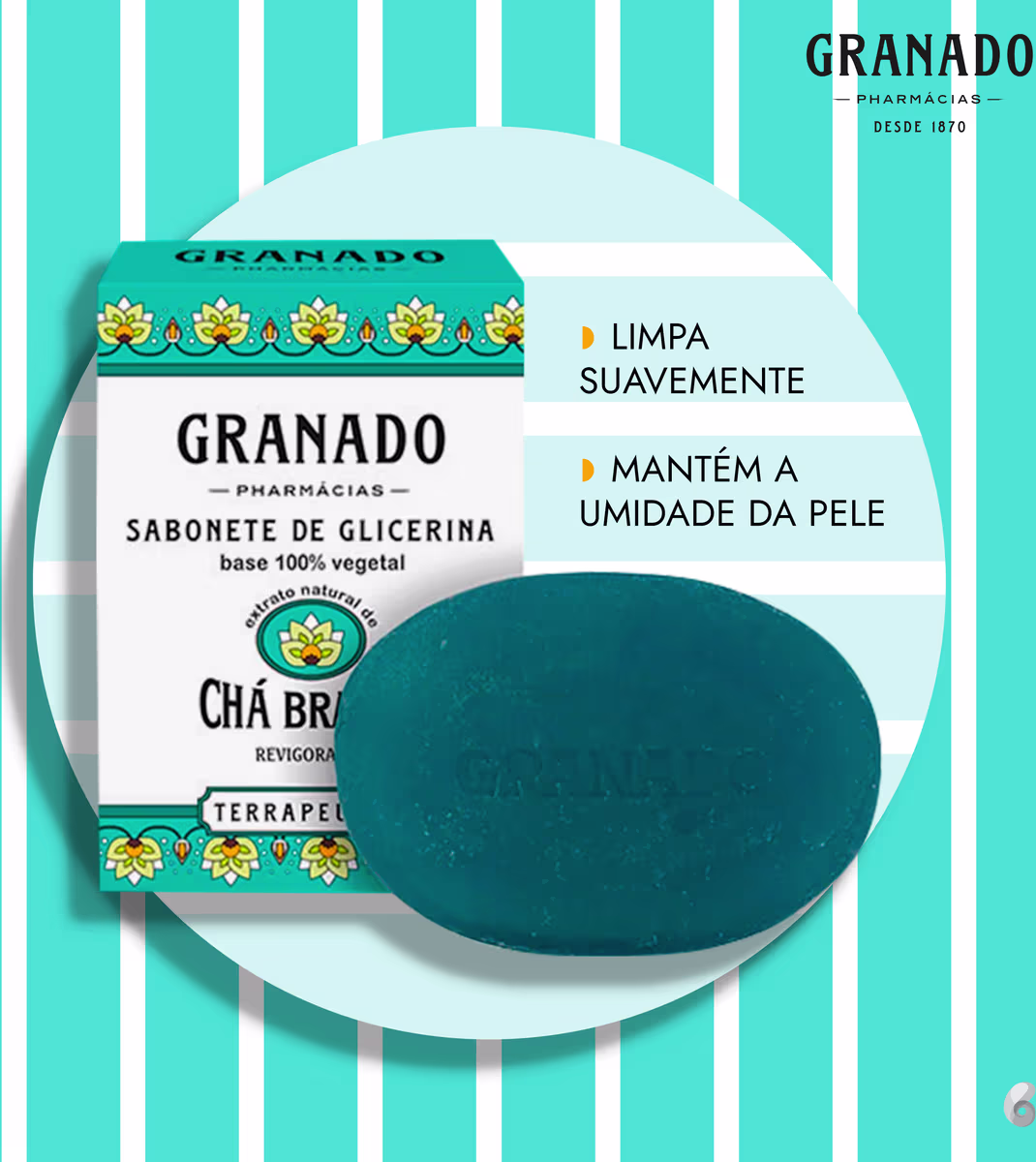 Sabonete em Barra Granado Chá Branco, limpa e mantem a umidade natural da pele. Melhores Sabonetes Granado na BLZ Ver mais ❯