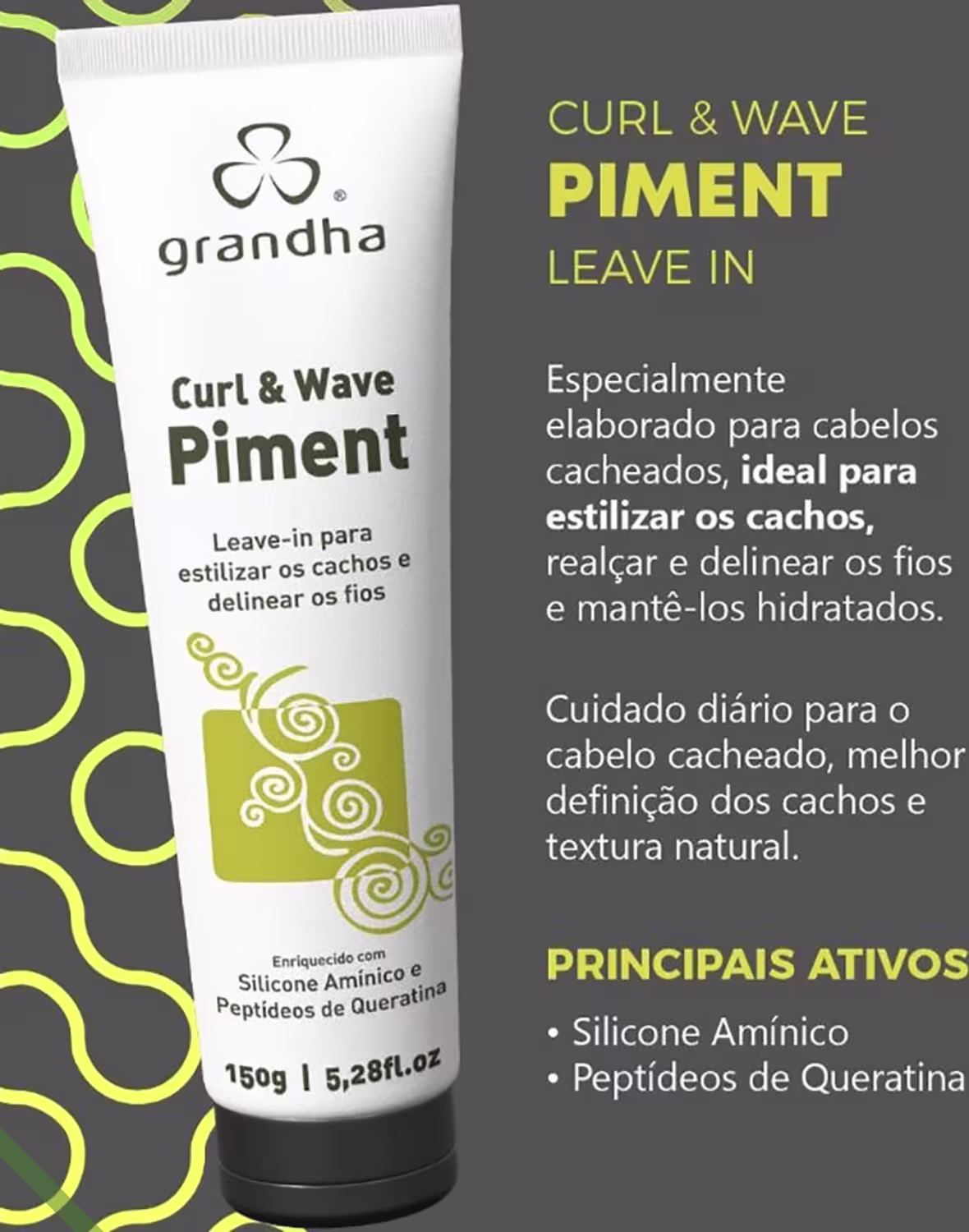 O Leave-in Grandha Curl & Wave Vector Force Piment foi especialmente desenvolvido para o cuidado diário dos cabelos cacheados naturais ou quimicamente tratados. Sua fórmula, composta por Silicone Amínico e Peptídeos de Queratina, oferece força e resistência aos fios, ao mesmo tempo em que hidrata e modela os cachos. O resultado é um aspecto natural e com grande durabilidade do efeito conferido.