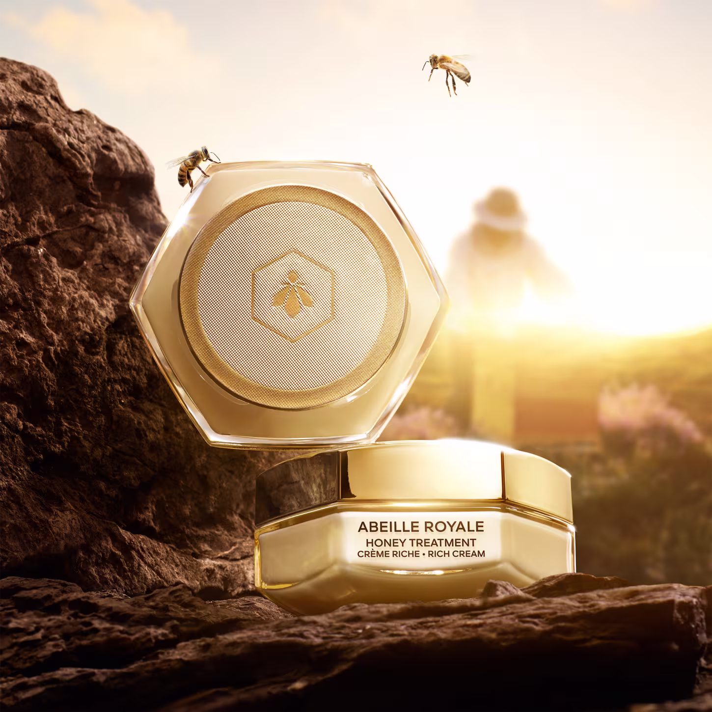 O Creme Rico Guerlain Abeille Royale Honey Treatment traz a composição que ostenta 93% de ingredientes de origem natural¹. Imbuído de Geleia Real, reconhecida por suas propriedades repositoras de lipídios², e enriquecido com Manteiga de Cera de Abelha, que retém a hidratação na camada epidérmica, proporciona conforto e flexibilidade à pele. Gradualmente, as marcas de expressão se atenuam, enquanto a firmeza, a textura sedosa e a luminosidade da pele são magnificadas.