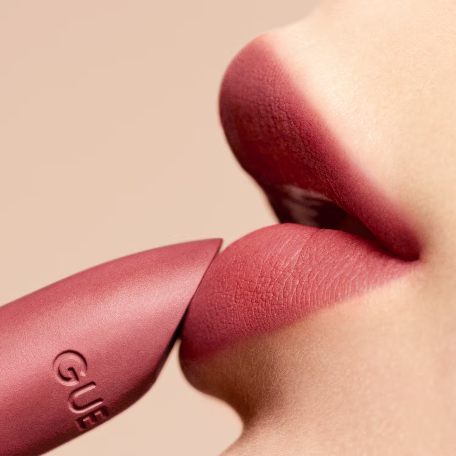 Batom matte com acabamento aveludado. Guerlain Rouge G Luxurious Velvet possui alta pigmentação, cor intensa e textura que oferece conforto aos lábios.