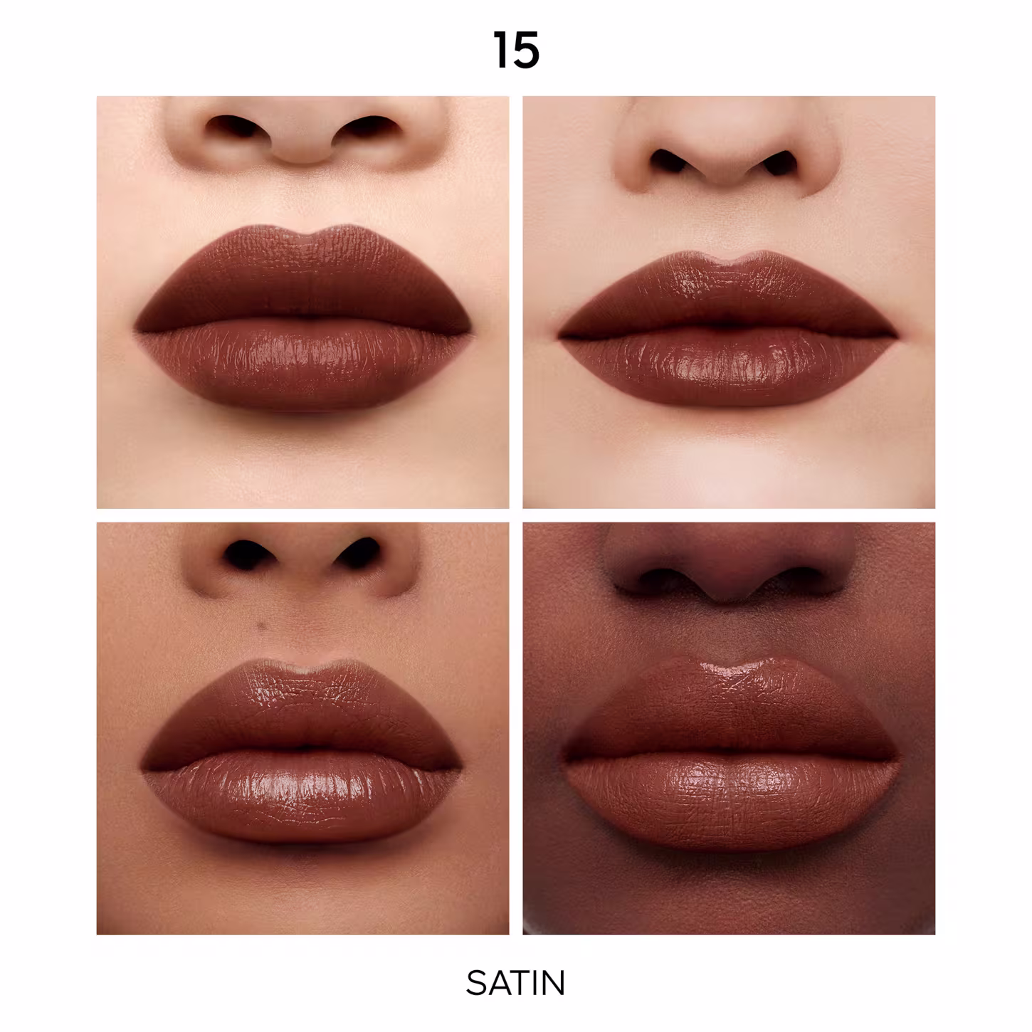 Batom com acabamento acetinado. Guerlain Rouge G Satin possui cores intensas e luminosas que envolvem seus lábios como uma joia para um visual deslumbrante. O primeiro batom customizado da marca, que acomoda seu tom favorito em cases incríveis para uma maquiagem com toque único como você!