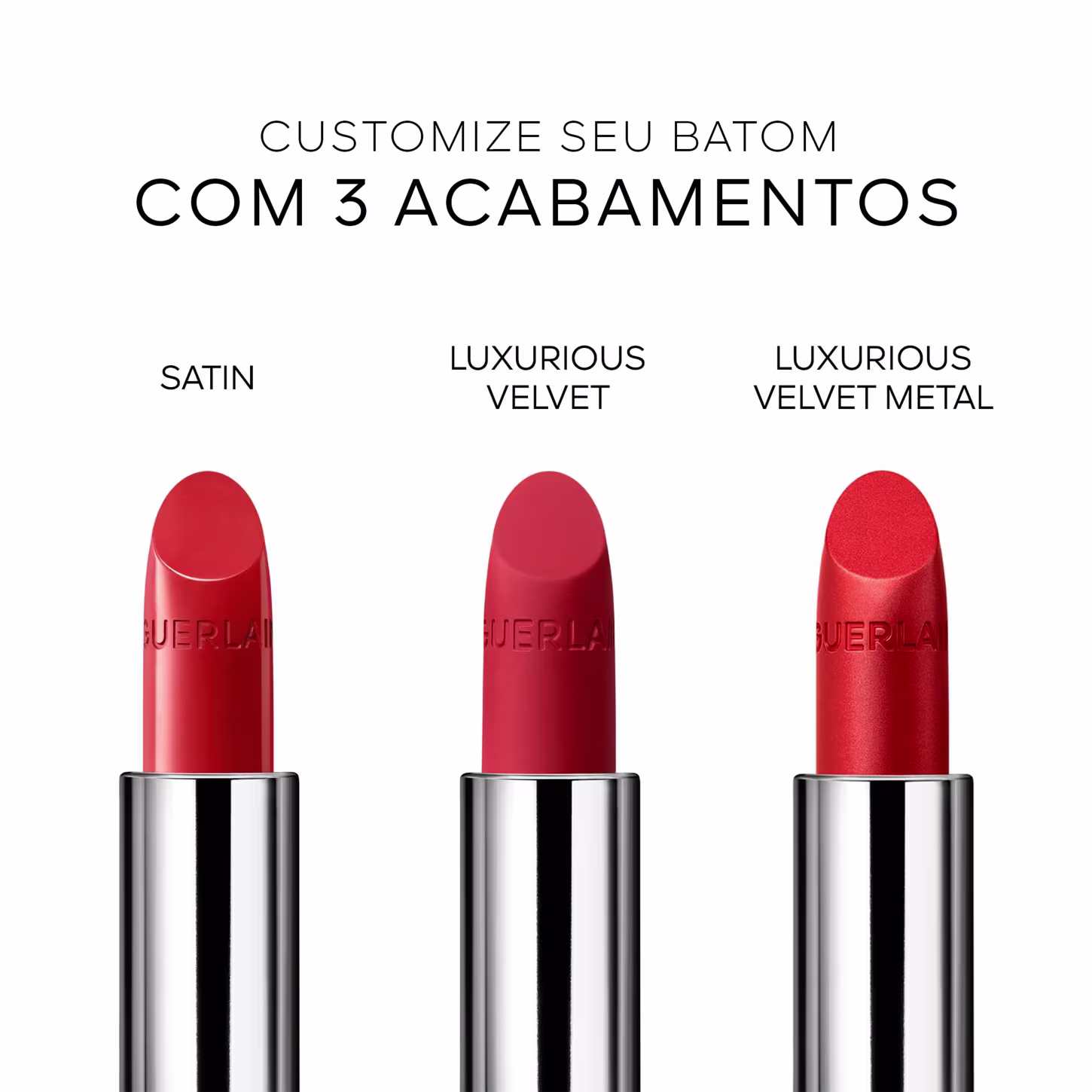 Batom com acabamento acetinado. Guerlain Rouge G Satin possui cores intensas e luminosas que envolvem seus lábios como uma joia para um visual deslumbrante. O primeiro batom customizado da marca, que acomoda seu tom favorito em cases incríveis para uma maquiagem com toque único como você!