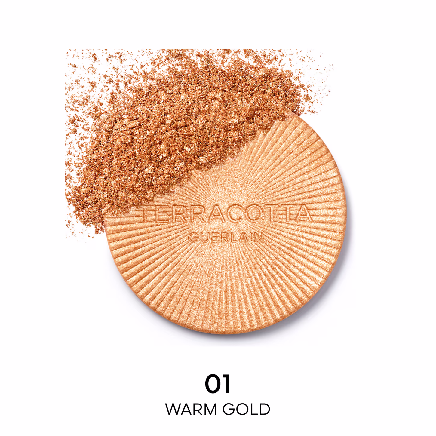 Iluminador. Guerlain Terracotta Luminizer possui um brilho luminescente que cria efeito dourado sutil, com reflexos multidimensionais.