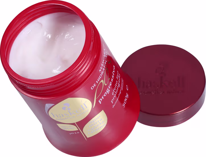 Haskell Pós Progressiva Máscara reduz o frizz e faz uma restauração da fibra capilar, além de deixar o cabelo macio e brilhante.
