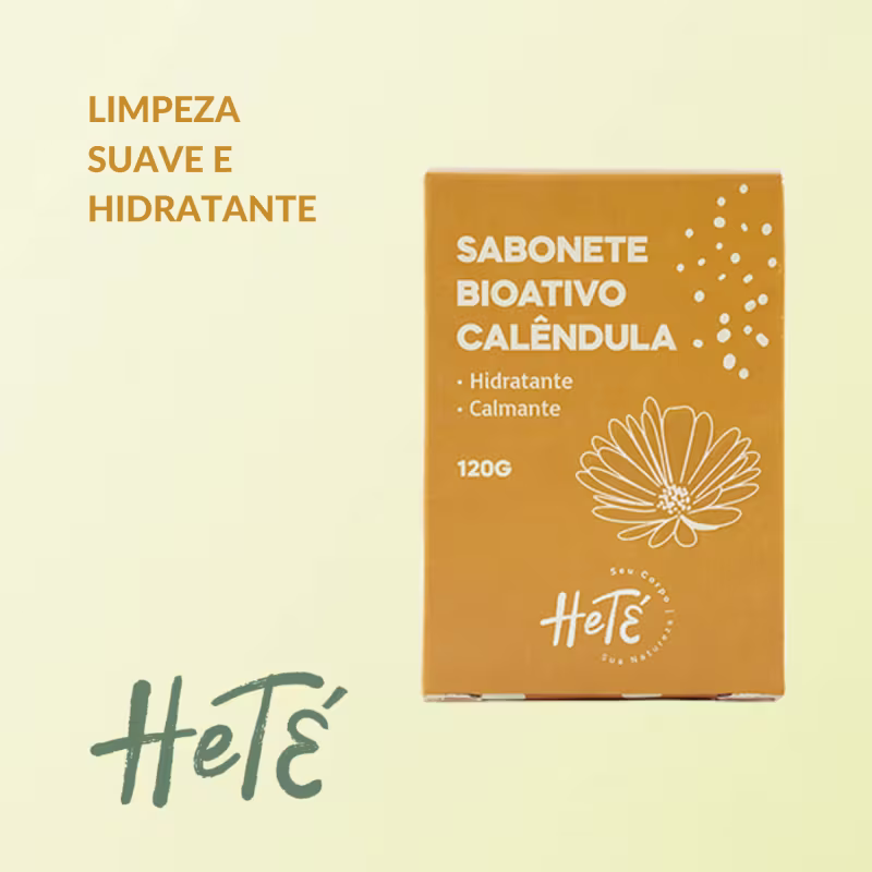 Sabonete em Barra Heté Bioativo Calêndula, que limpa suavemente ao mesmo tempo que hidrata. Melhores Sabonetes Heté na BLZ Ver mais ❯
