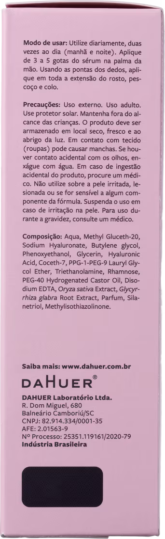 O Sérum Facial Hidrabene Sérum Hyaluronic Filler conta com ação pro-age, graças a uma potente combinação de ativos hidratantes e antioxidantes que protegem contra o envelhecimento fisiológico da derme e estimulam a síntese de Colágeno e Proteínas.