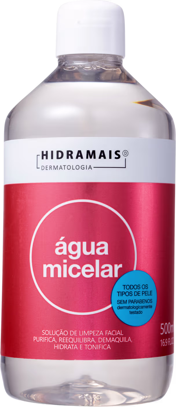 Hidramais Água Micelar remove facilmente maquiagem, impurezas e poluição, sem agredir e nem ressecar a pele. É recomendada para limpeza profunda e sua fórmula suave pode ser usada até mesmo nas peles mais delicadas e sensíveis.
