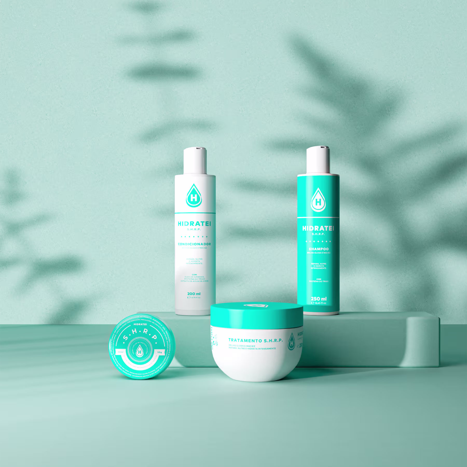 Shampoo para todos os tipos de cabelo. Hidratei S.H.R.P. proporciona brilho espelhado, hidratação e limpeza aos fios.