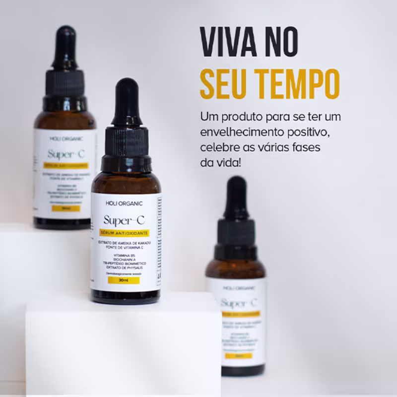 Não sei o CEPSérum facial antioxidante. Holi Organic Super-C proporciona ação rejuvenescedora para uma pele mais hidratada, firme e iluminada.