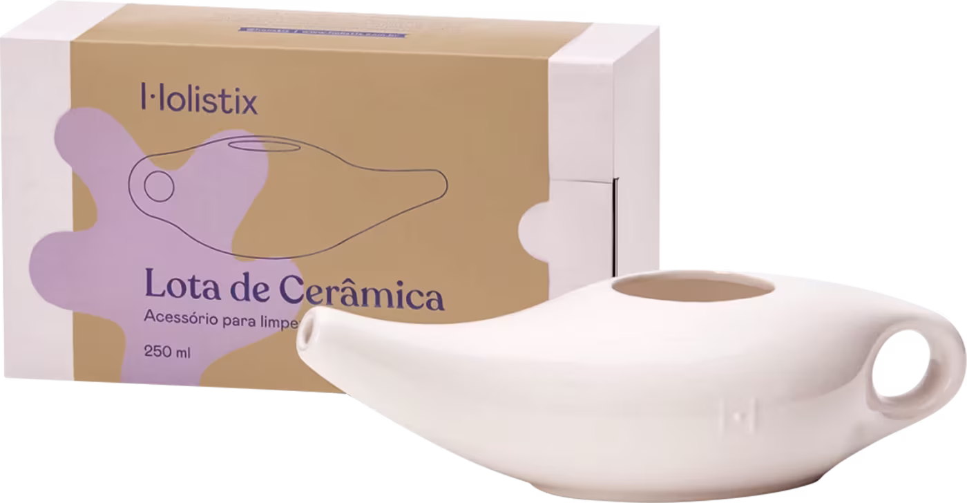 Lota nasal de cerâmica para lavagem nasal. Holistix Cerâmica higieniza as vias respiratórias, trazendo mais saúde e bem estar.