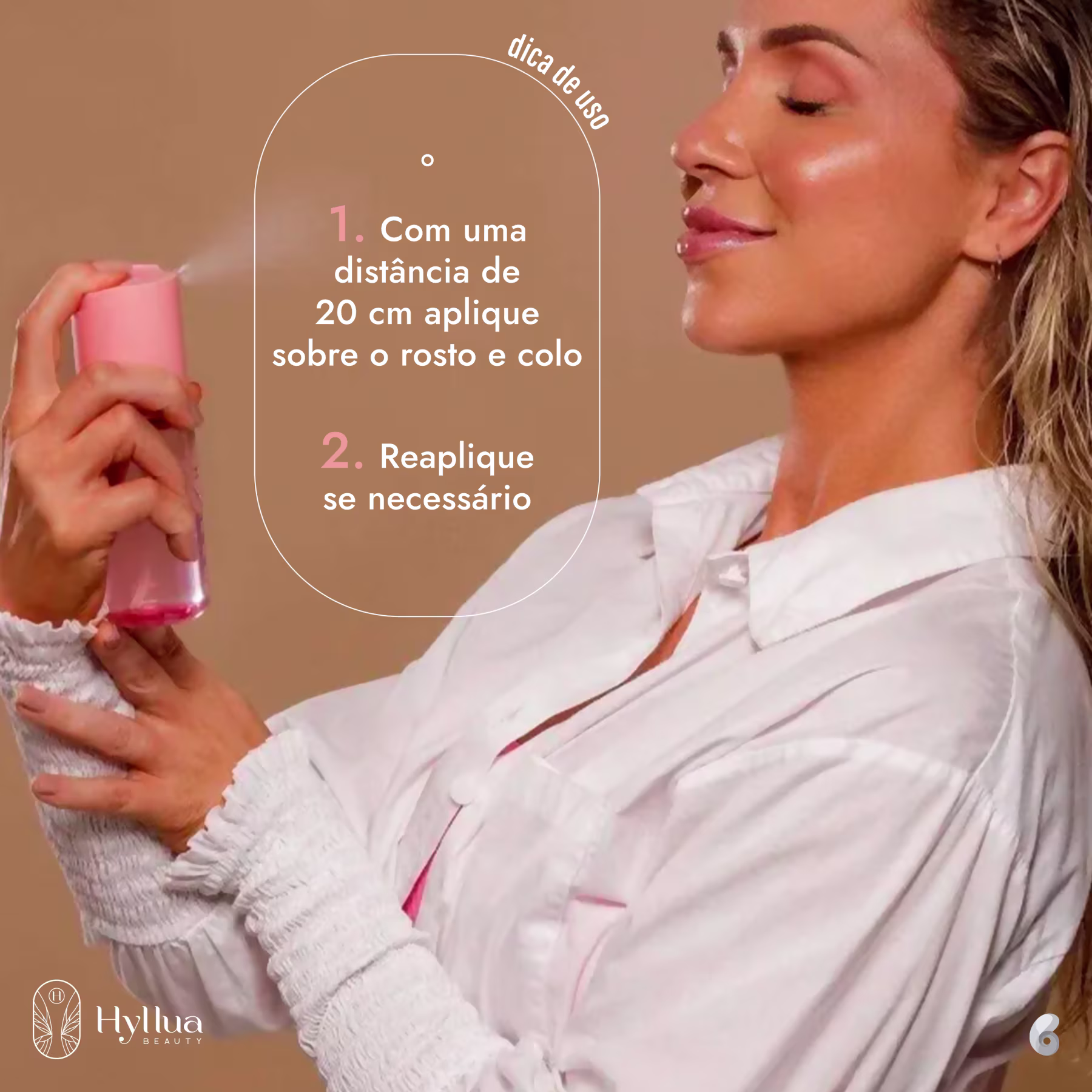 A Bruma Hidratante Hyllua Beauty Fresh Water possui uma fórmula aquosa leve que ao ser borrifada, funciona como uma espécie de nevoeiro com uma camada superfina que recobre o rosto, hidratando com suavidade e rápida absorção. Sua composição restaura o equilíbrio mineral da pele mantendo-a mais hidratada e protegida, além de trazer um novo vigor e mais luminosidade natural.