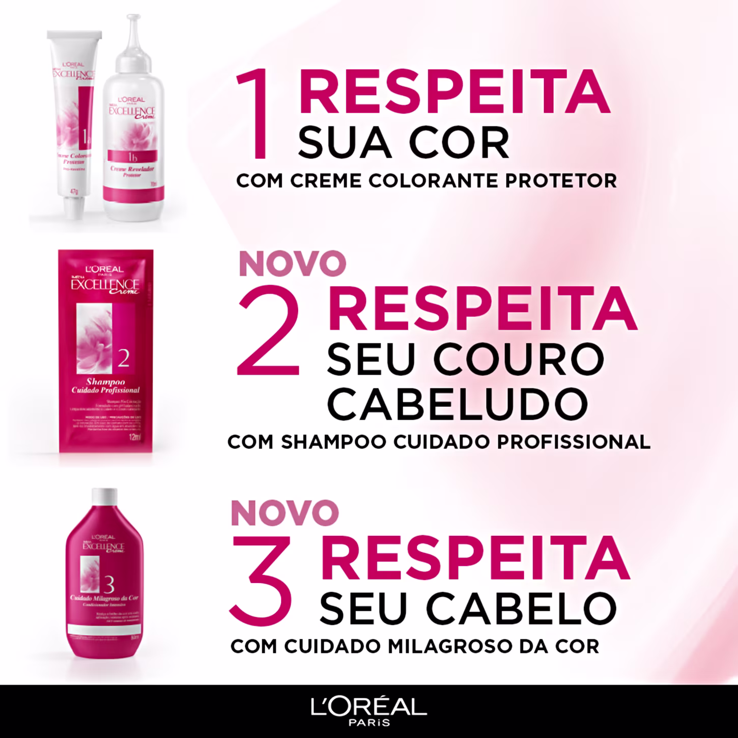 Coloração Imedia Excellence Creme apresenta triplo cuidado e proteção aos fios graças aos seus ativos reparadores, como a Pro-Keratina e Ceramida que fortalecem e restauram a saúde do cabelo. Perfeita para colorir intensamente, mudar seu visual e ainda oferecer um aspecto saudável aos fios.