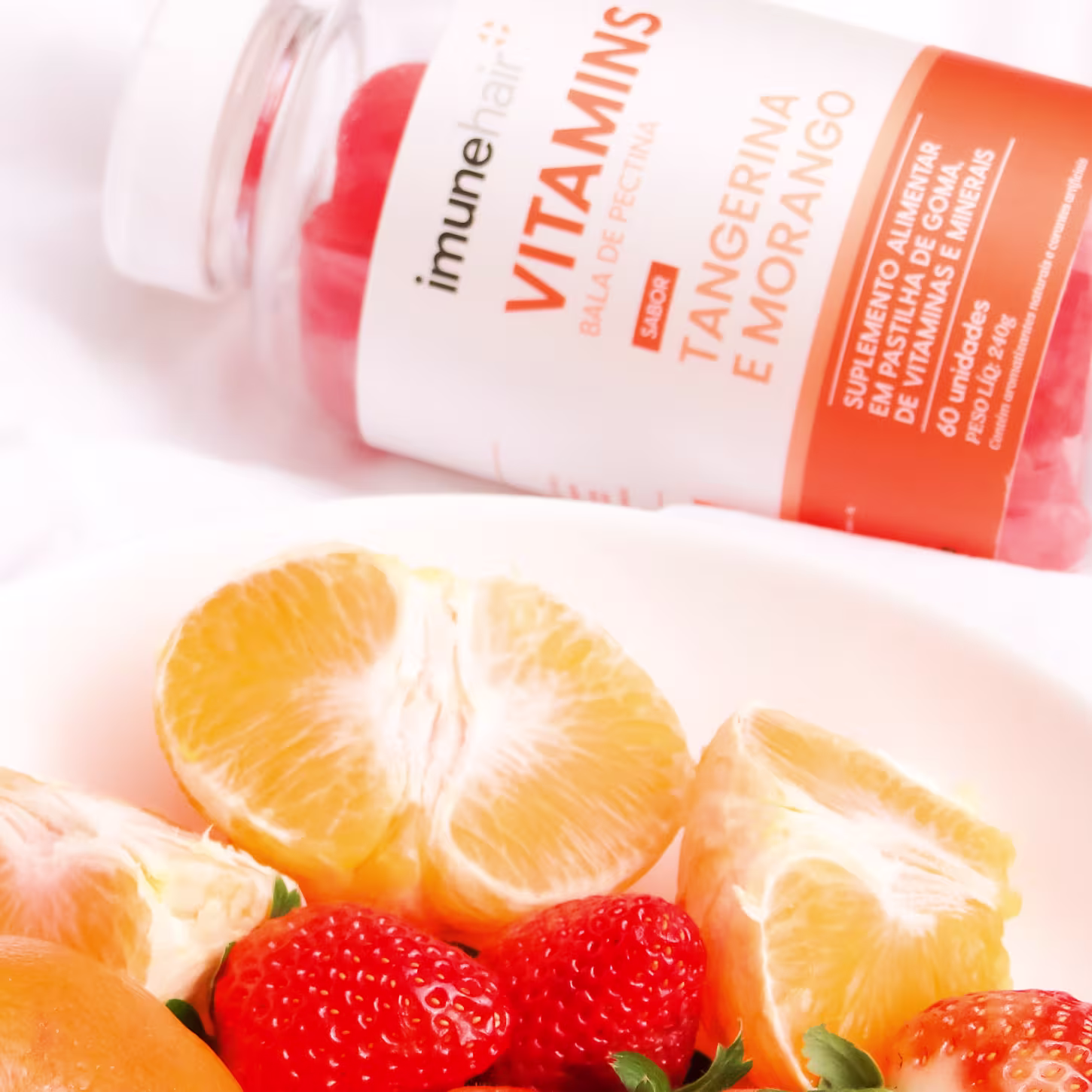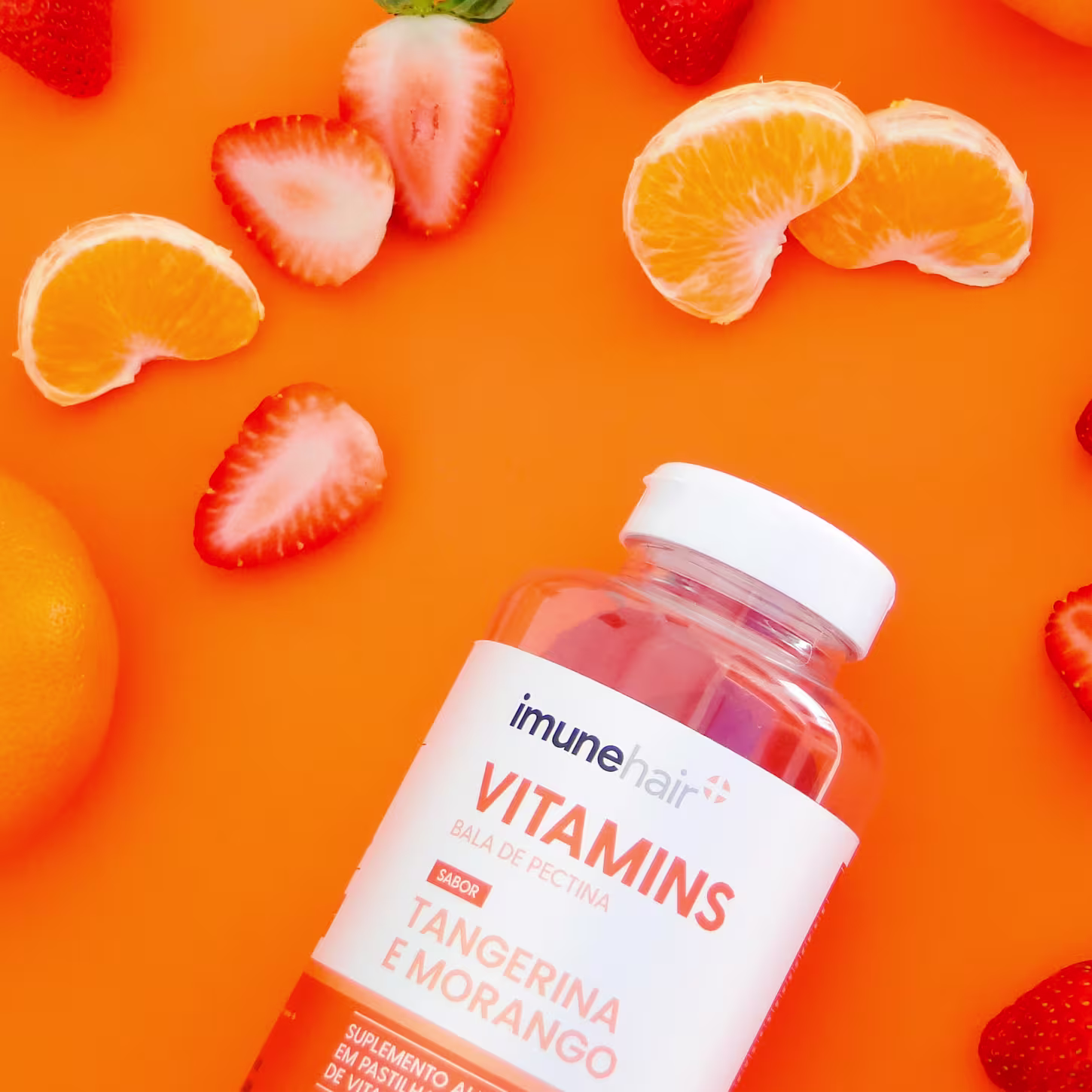 O Suplemento Imunehair Vitamins Bala de Pectina ajuda na nutrição do corpo, na reposição de vitaminas e minerais essenciais. Assim, auxilia no crescimento dos cabelos, reduz a queda capilar, melhora a vitalidade dos fios, deixa as unhas mais fortes e a pele com aspecto mais saudável, além de melhorar o sistema imunológico. Tudo isso com um delicioso sabor de Tangerina e Morango.