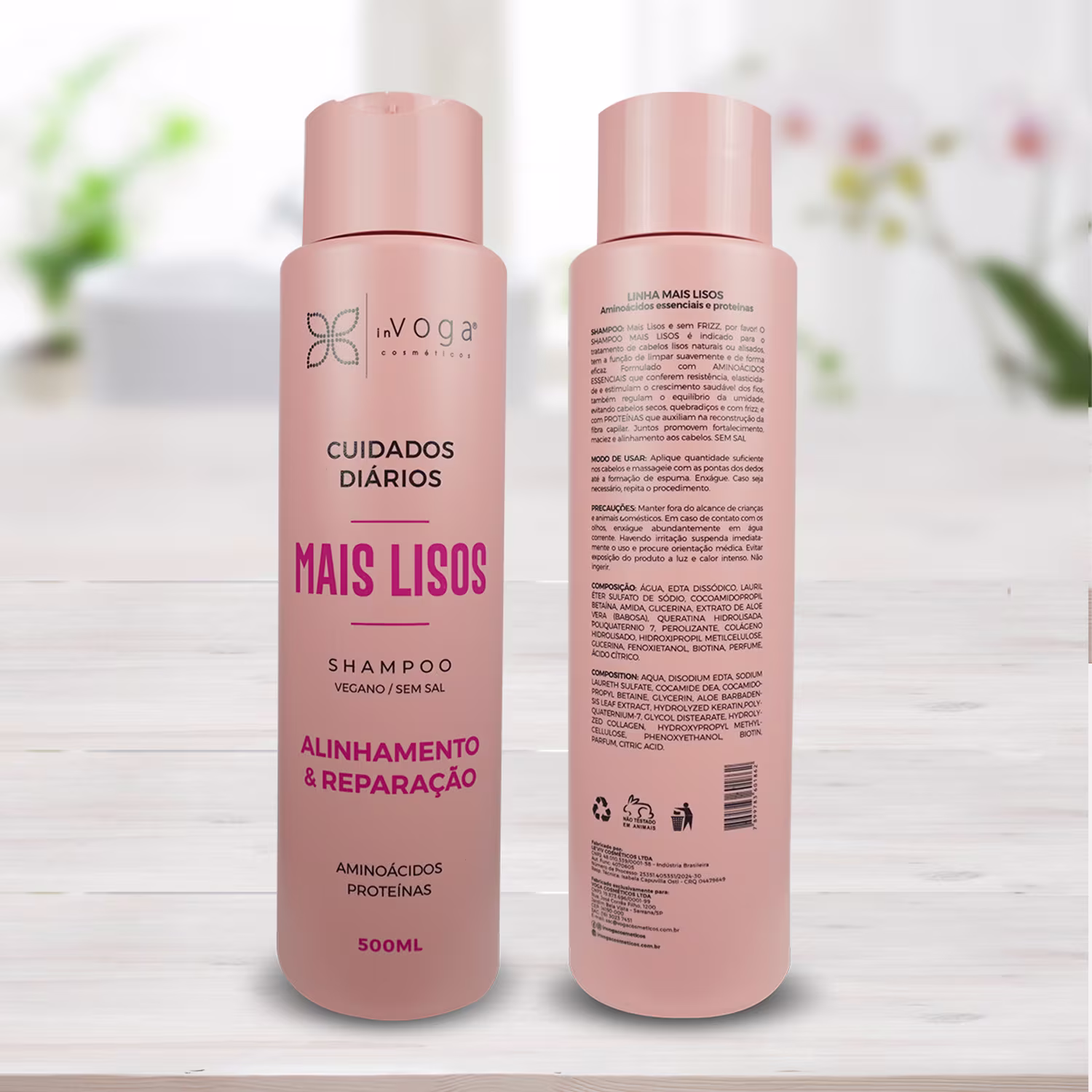 Shampoo para cabelos lisos. In Voga Mais Lisos alisa, repara e fortalece os fios, promovendo crescimento saudável.