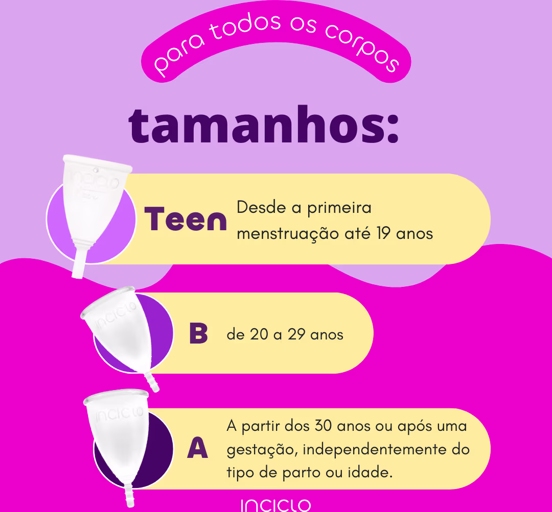 Coletor menstrual sem pigmento. Inciclo Tipo A (+30 anos ou com filhos) Sem Pigmento é recomendado para mulheres com mais de 30 anos ou que já tiveram filhos. A quantidade de fluxo, porte físico, altura do colo do útero, tipo de parto e o fato de praticar atividades físicas não interferem na escolha do modelo.