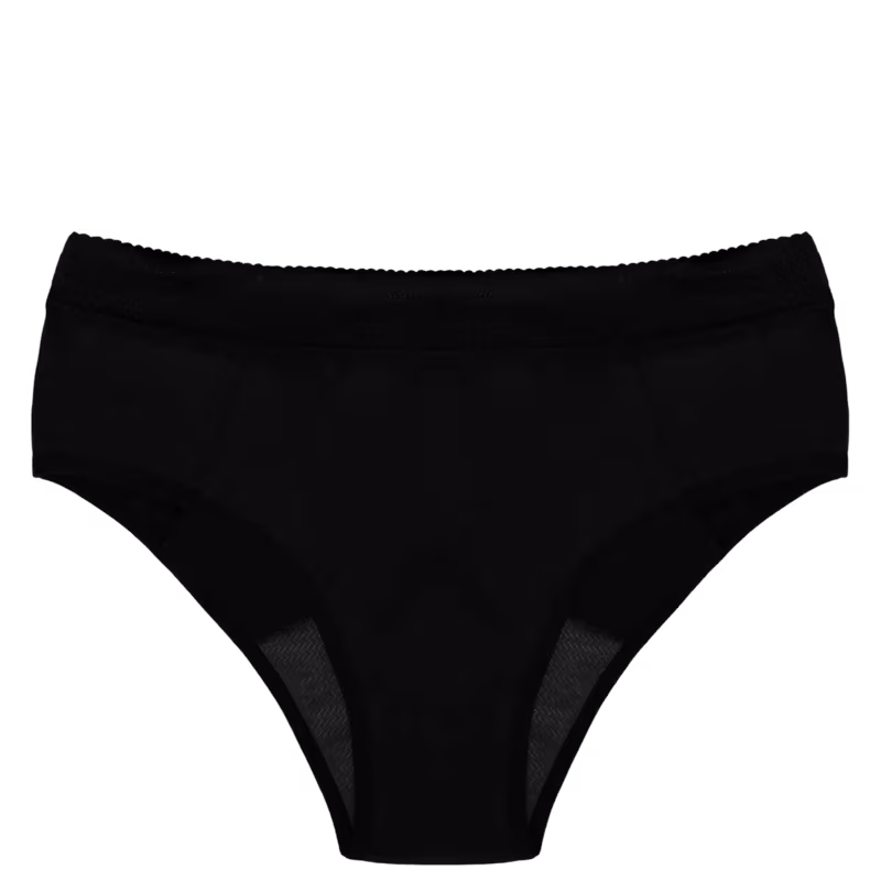 Calcinha absorvente reutilizável na cor preta. Inciclo Descoberta conta com máxima absorção, conforto, estilo e alta tecnologia.