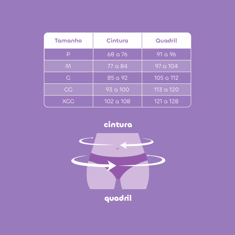 Ela é segura e ideal para todos os dias do ano, ideal para sua menstruação, incontinência urinária leve a moderada, fluídos naturais do corpo e para o período pós-parto. Pensada para todos os corpos! Você com mais liberdade para realizar todas as suas atividades com muito mais conforto e segurança.