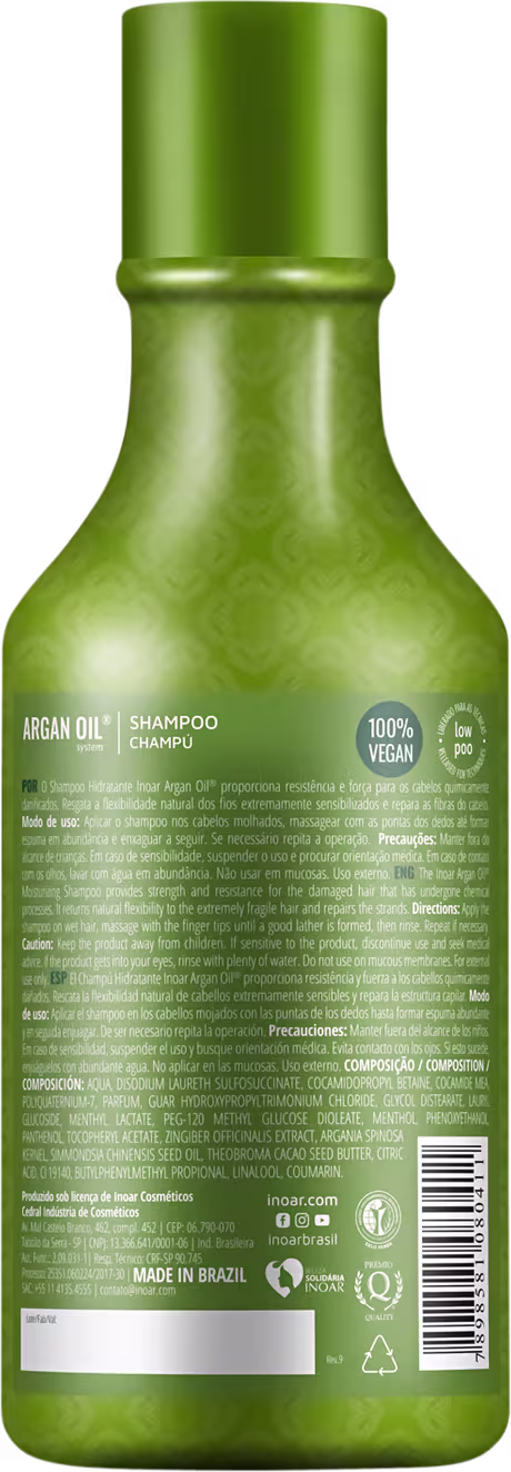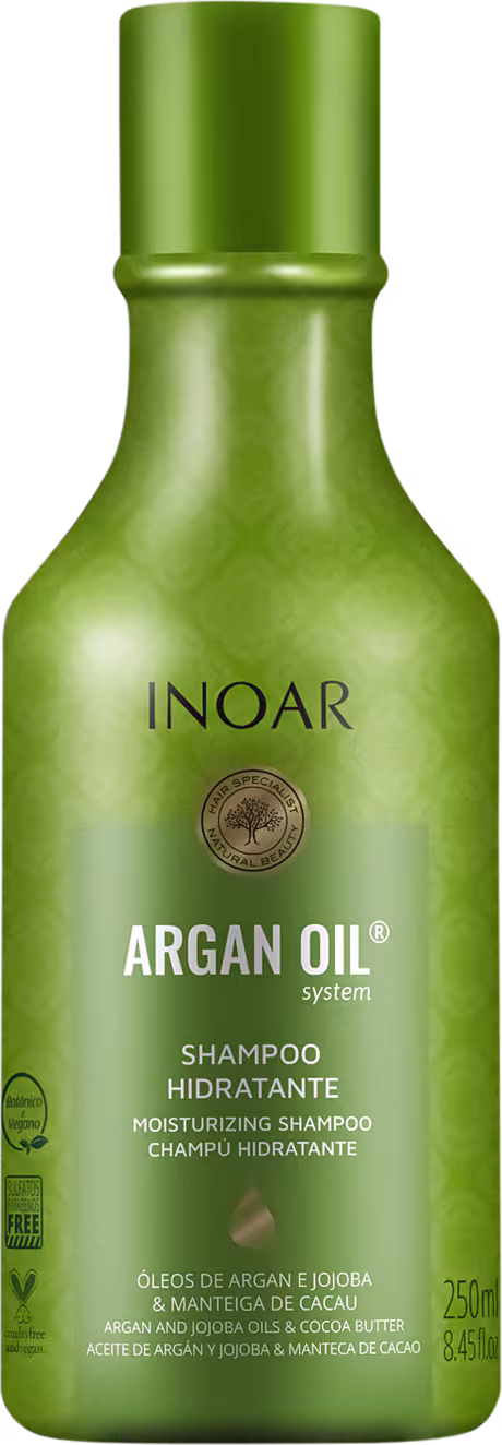 Shampoo Inoar Argan Oil System proporciona hidratação e resistência através do poder nutritivo do óleo de argan. Ele traz de volta a flexibilidade ao mesmo tempo em que repara a estrutura dos fios, dá brilho e toque sedoso.