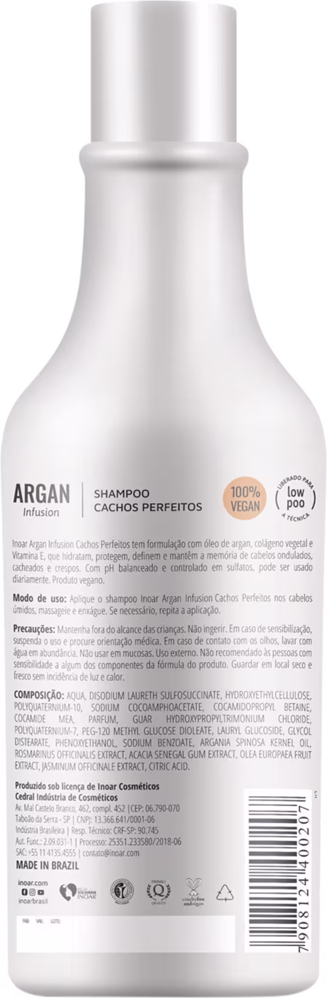 Compre Shampoo Inoar Argan Infusion Cachos Perfeitos, curvas definidas. Melhor preço e entrega rápida. Garanta Shampoo Inoar Argan Infusion Cachos Perfeitos. Ver mais ❯