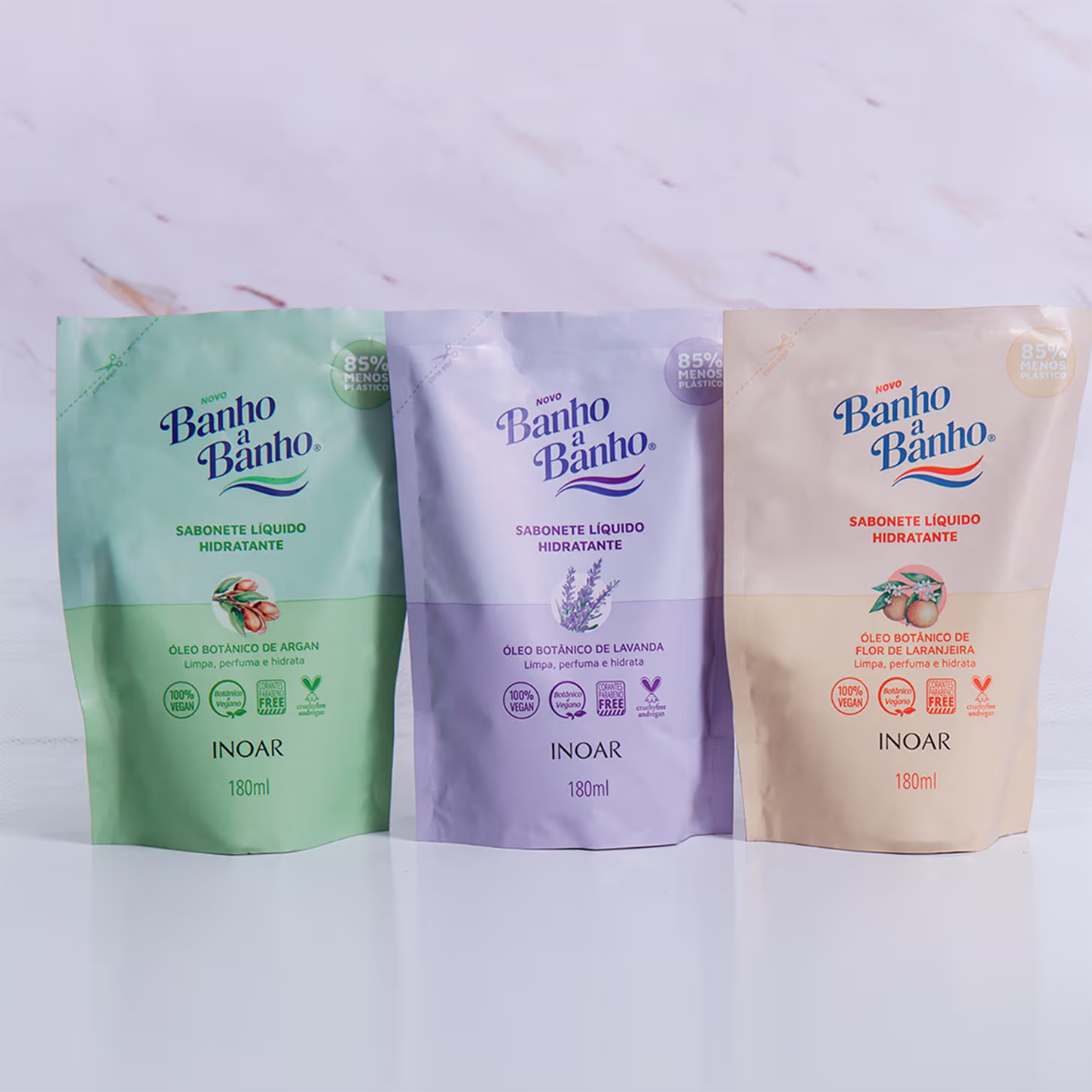 Sabonete Líquido. Inoar Banho a Banho foi desenvolvido com óleos botânicos e ingredientes 100% veganos.