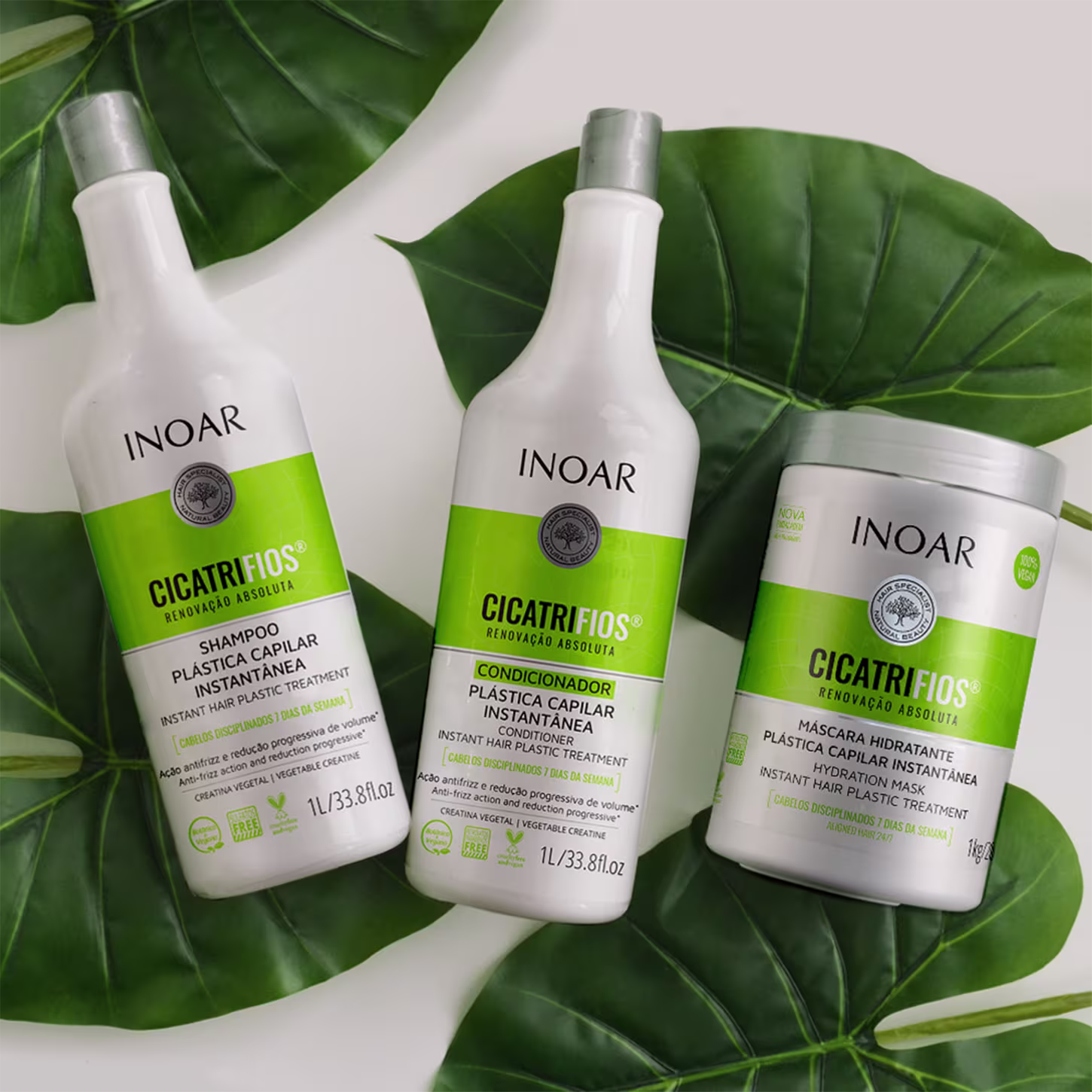 O Shampoo Inoar Cicatrifios age profundamente, reparando a cutícula para disciplinar os fios 7 dias por semana. Seu uso promove recuperação total da fibra capilar fragilizada, selando os fios do começo ao fim, reparando pontas duplas e preservando a saúde e a beleza dos cabelos longos. Reduz gradativamente o volume, alinha e evita que os fios se partam.