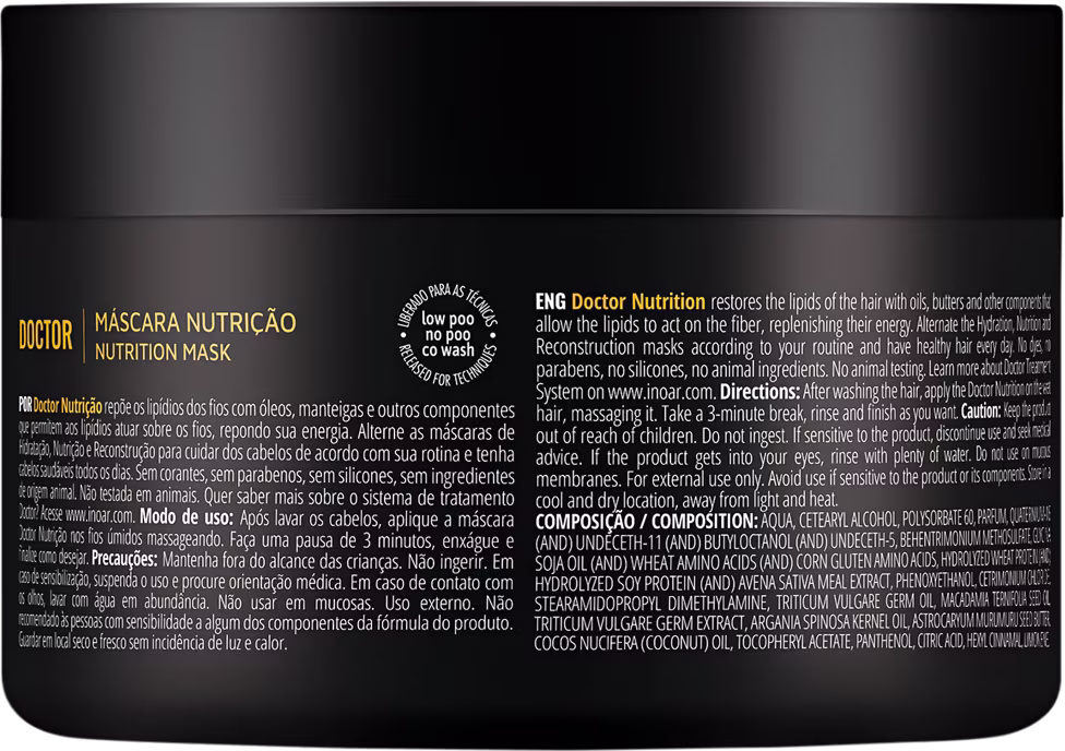 Compre Máscara Inoar Doctor Nutrição, repõe os lipídios dos fios. Melhor preço e entrega rápida. Garanta Máscara Inoar Doctor Nutrição. Ver mais ❯