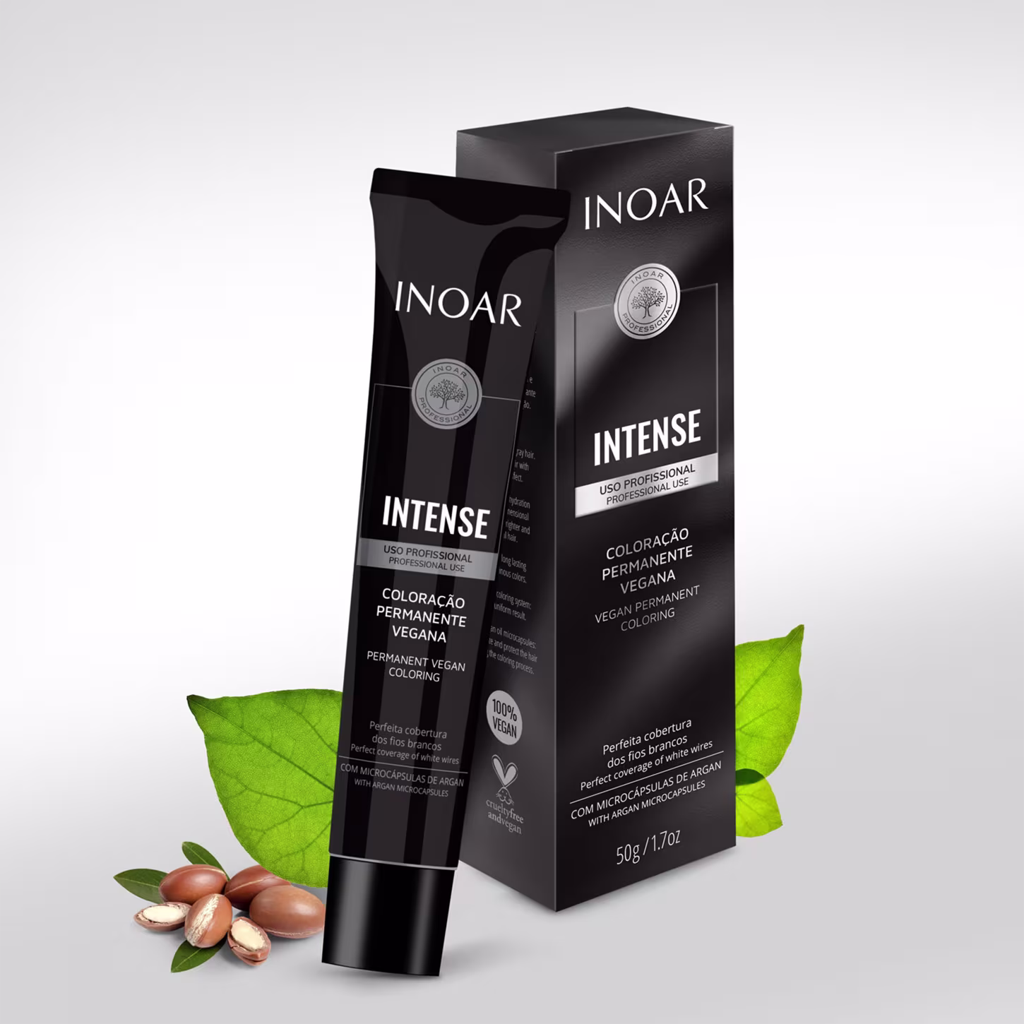Coloração para todos os tipos de cabelo. Coloração Inoar Intense tintura permanente, cobertura perfeita dos fios brancos.