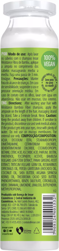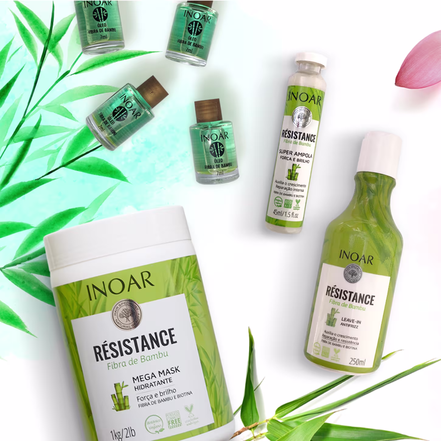 Ampola capilar para cabelos danificados. Inoar Résistance Fibra de Bambu Ampola Capilar auxilia no crescimento dos fios, promove força e repara o cabelo enfraquecido.