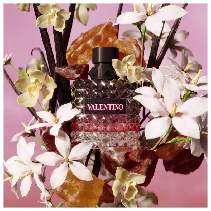 O aroma de Born In Roma Donna Intense Eau de Parfum é impulsionando por uma poderosa baunilha e um trio de jasmim luminoso. É perfeito para quando você precisar de uma dose de energia e autoestima. O frasco presta homenagem ao icônico Valentino Rockstud, as famosas e desejadas “tachinhas” de Valentino presentes nas bolsas e sapatos da marca. Esse design piramidal arrojado, inspirado na arquitetura romana, é uma assinatura da Maison Valentino.