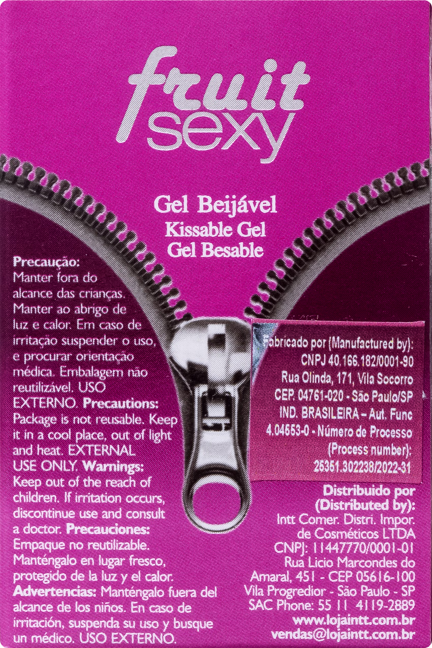 Gel beijável. Intt Fruit Sexy, com leve efeito quente, proporciona um momento único a dois, com muito mais sensualidade.