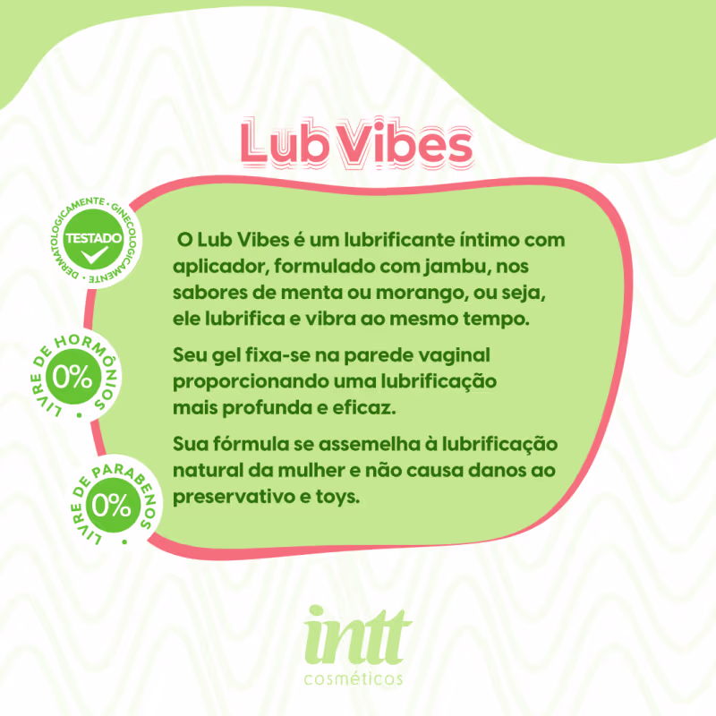 Lubrificante íntimo. Intt Lub Viber, seu gel fixa na parede vaginal, promovendo uma lubrificação mais eficaz e profunda.