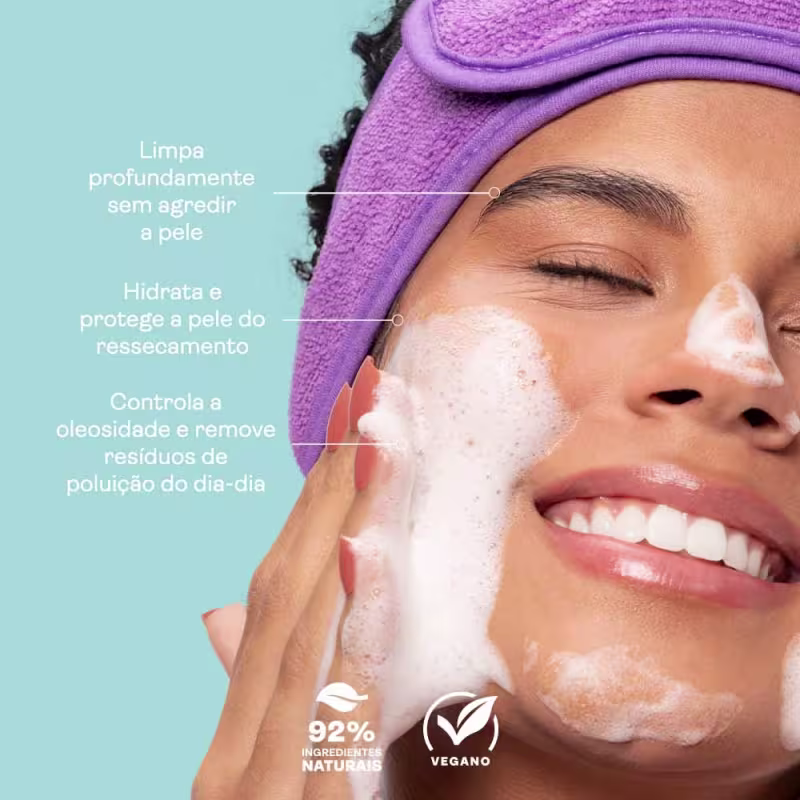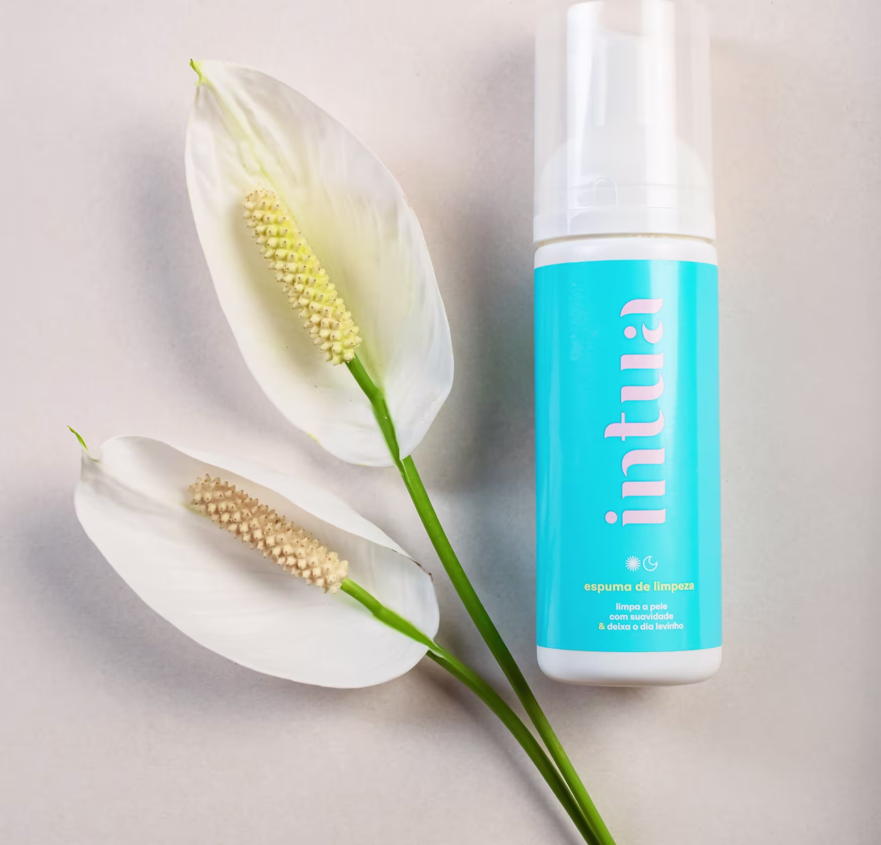 Espuma de limpeza facial para todos os tipos de pele. Intua Beauty Espuma limpa a pele de maneira eficiente e sem ressecar, com formulação vegana, feita com 92% de ativos naturais.