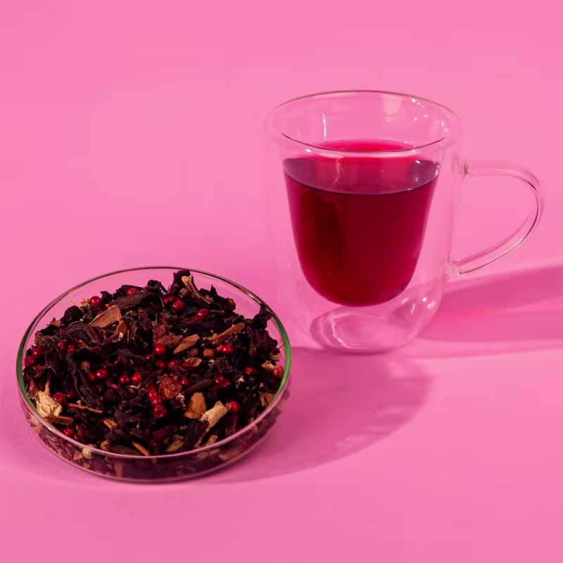 O Chá Infusão Intua Beauty #Flow combina Hibisco, Rosa Mosqueta, Gengibre, Canela, Cravo e Pimenta Rosa, que tem propriedades desintoxicantes, anti-inflamatórias, antioxidantes, diuréticas, digestivas e termogênicas.