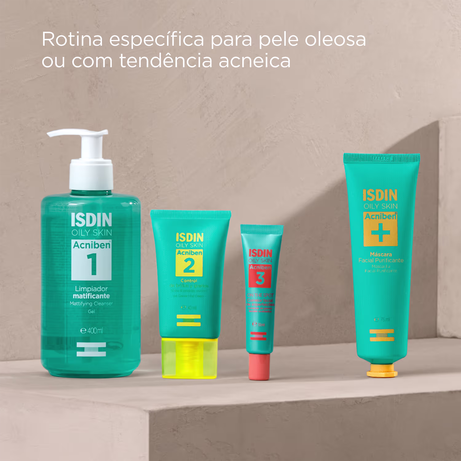 Máscara facial purificante para peles oleosas e acneicas. ISDIN Acniben é a solução ideal para quem busca uma rotina de skincare prática e eficiente no combate à acne e aos cravos e espinhas.