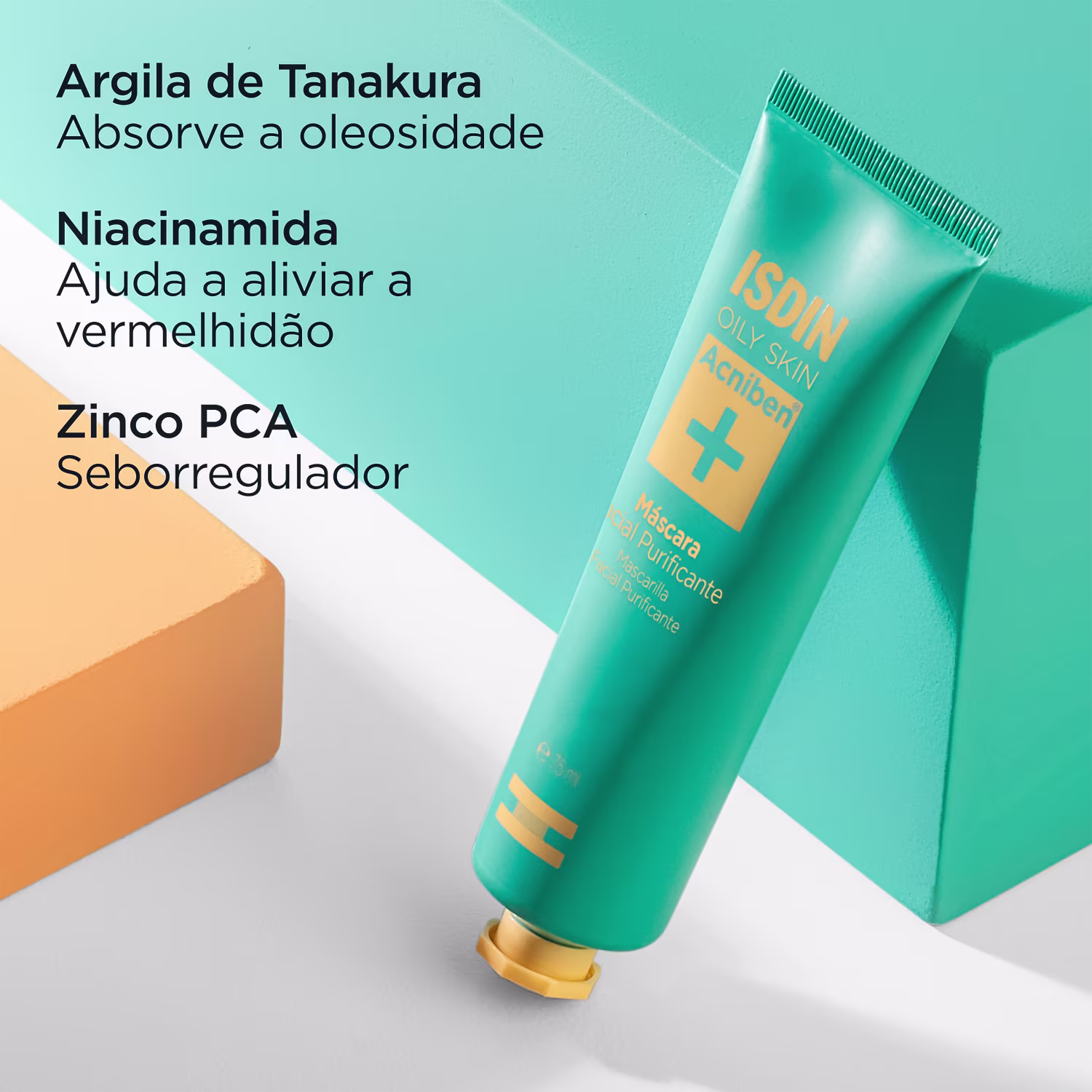 A Máscara Facial Purificante ISDIN Acniben traz fórmula inovadora com Argila de Tanakura promove uma limpeza profunda, reduzindo imediatamente o excesso de sebo e deixando a pele sequinha e matificada. Diga adeus ao brilho indesejado