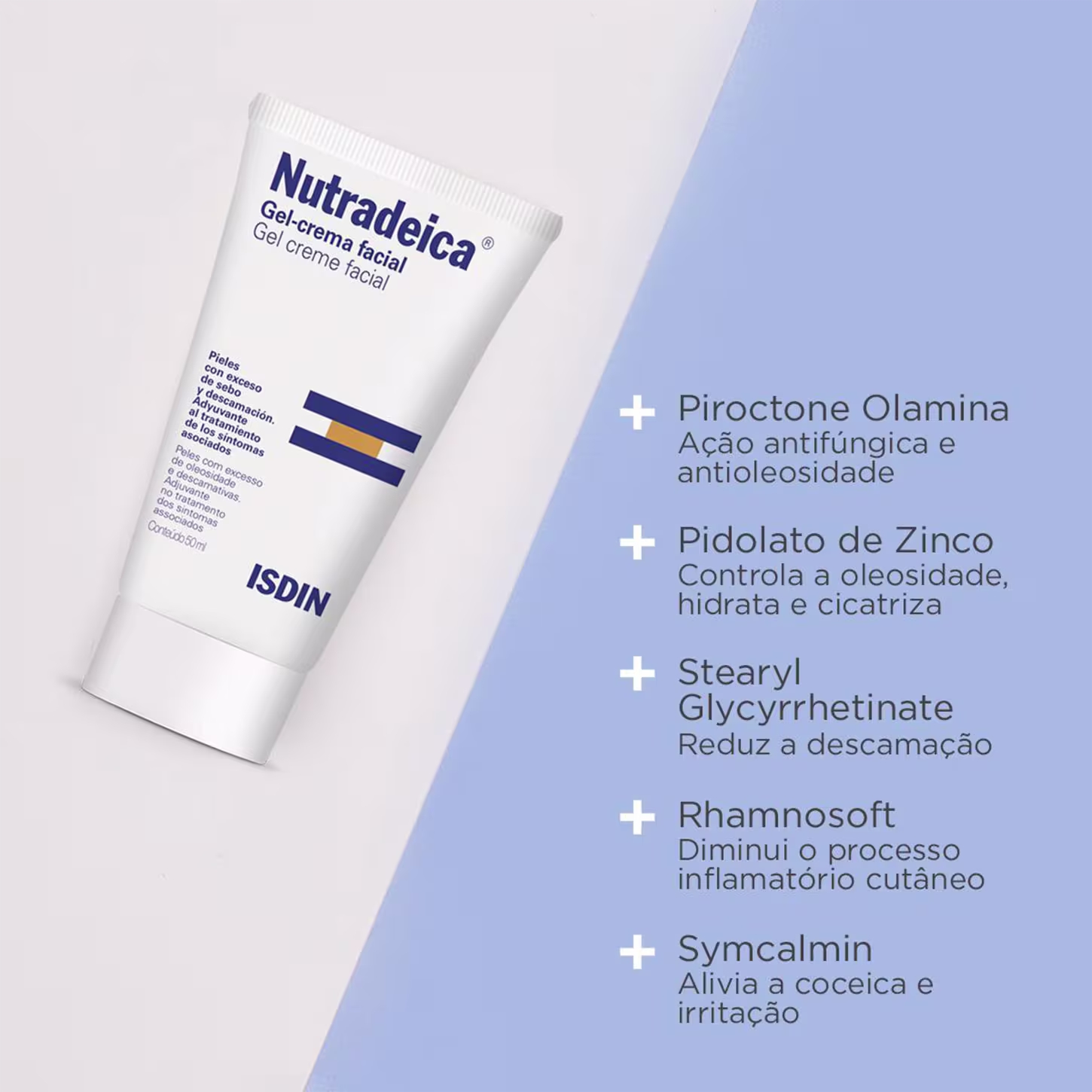 Hidratante facial para pele reativa. ISDIN Nutradeica controla o excesso de oleosidade e mantém o rosto sem descamação, vermelhidão e coceira.